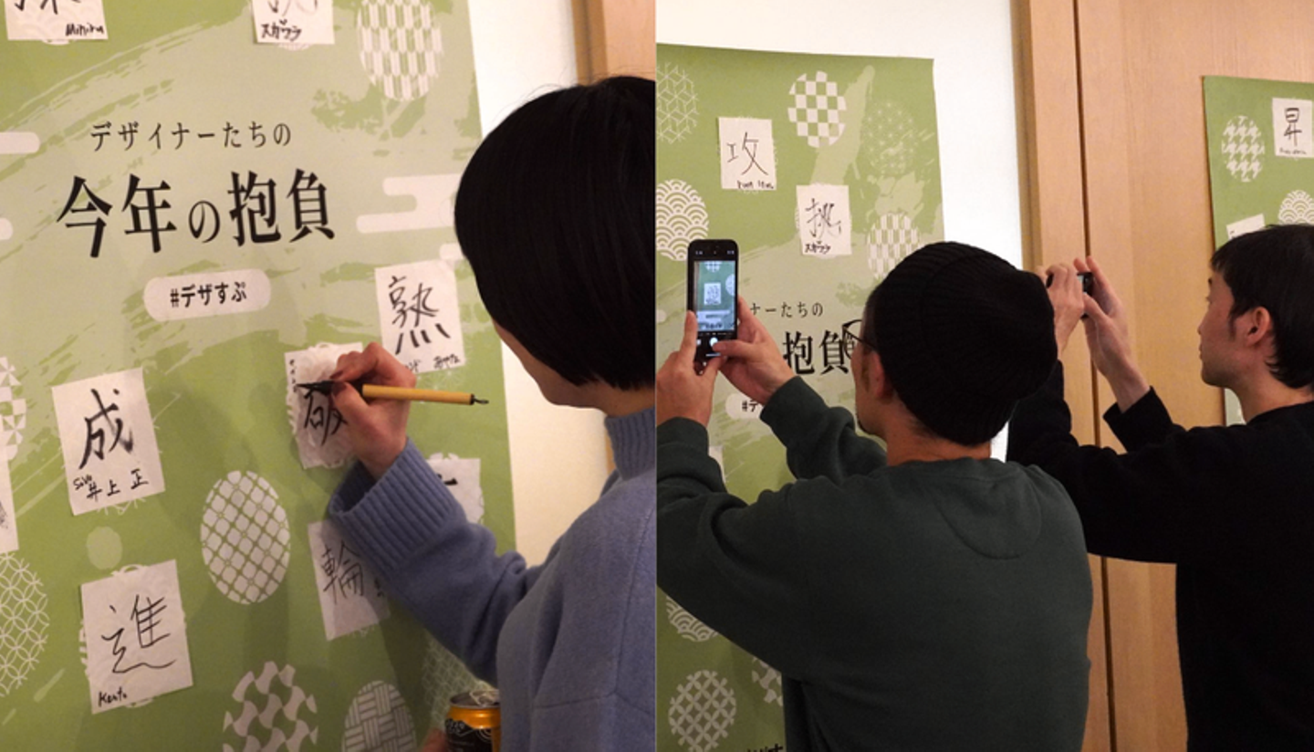 オープニング前には、参加者の皆さんと交流会として書き初めを行ってもらい、参加者それぞれの今年の抱負を一文字で書いてもらう時間を用意しました。