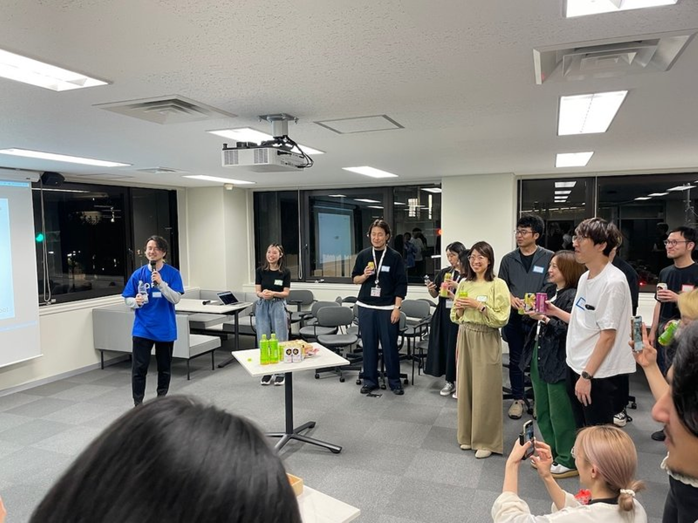 移転後、新しいオフィスで迎えた最初のデザすぷとして、みなさんから移転をお祝いをいただきながら、総勢30名近くの方々にお集まりいただきました。
