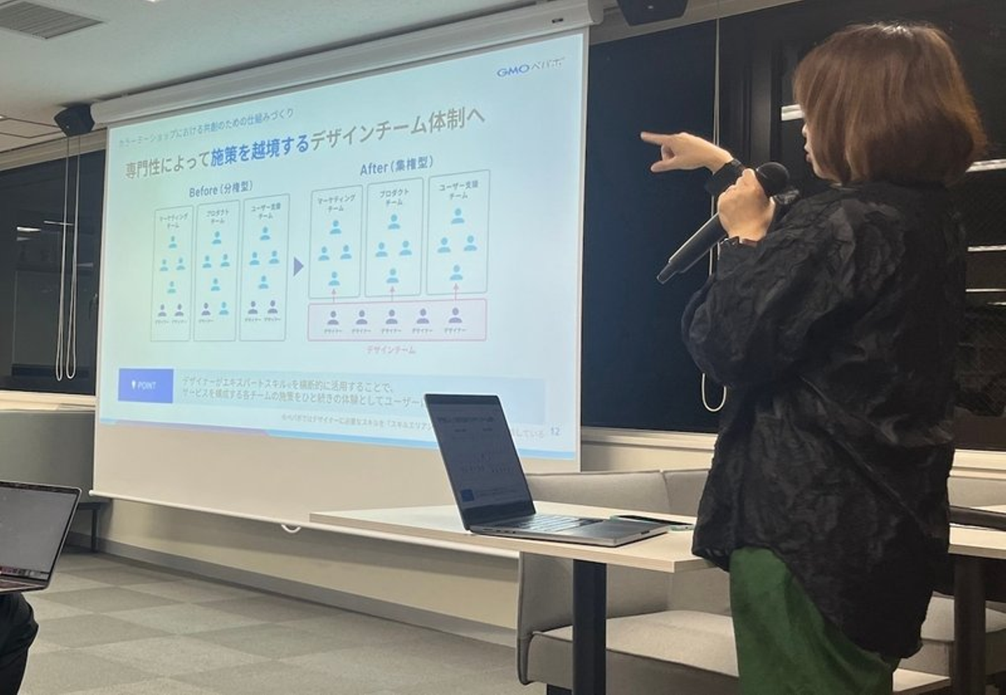 これらを通して、デザイナーと他職種が共創し合い、デザインという行為を組織的に行なっていくことを目指されているとのことでした。