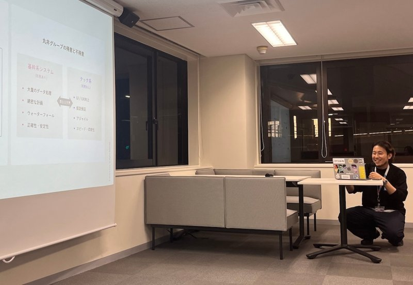 今回は、移転後記念すべき第1回🎉 ということで、招待制のLT会及び交流会として、「デザイナー以外の職種との共創」をテーマに、30名ほどのデザイナーの皆さんにお集まり頂きました。