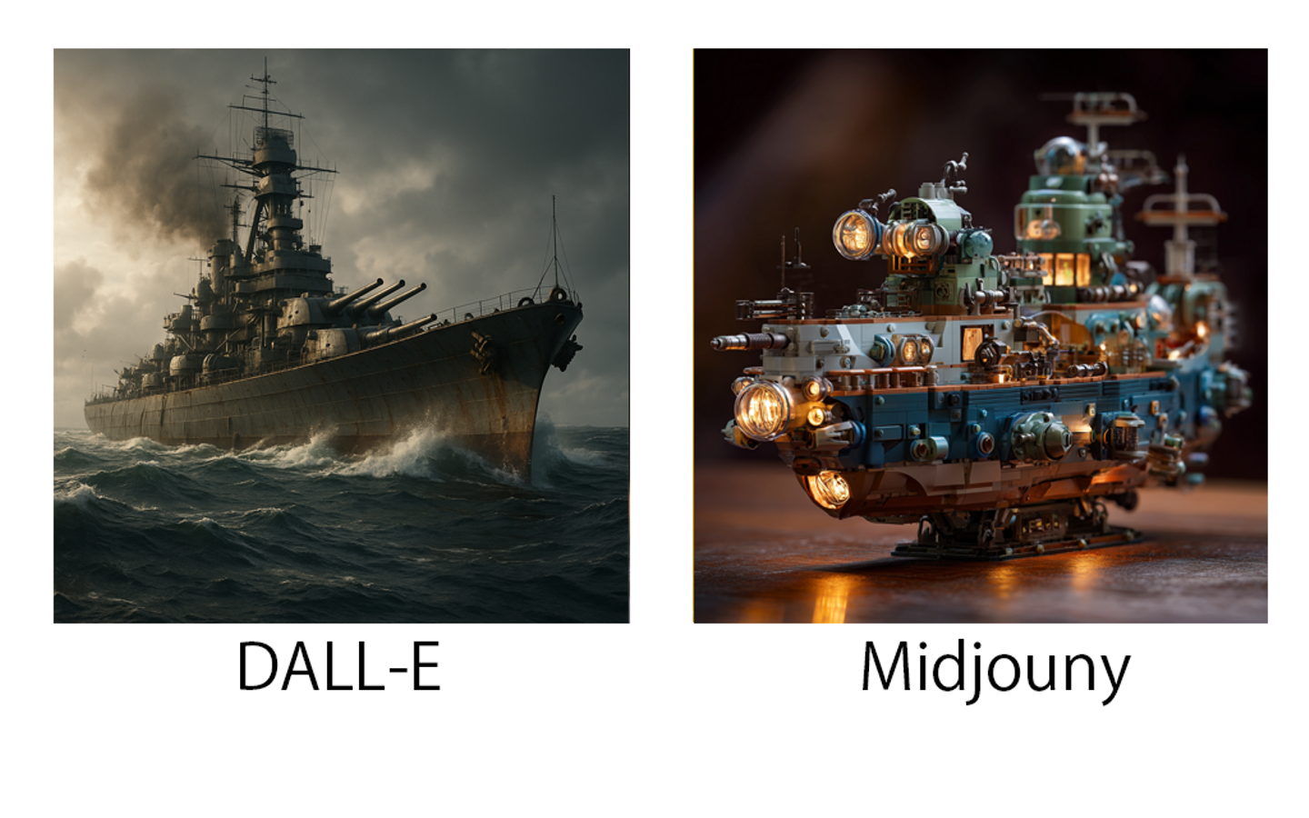 - DALL-E → そこそこリアルな戦艦を生成。