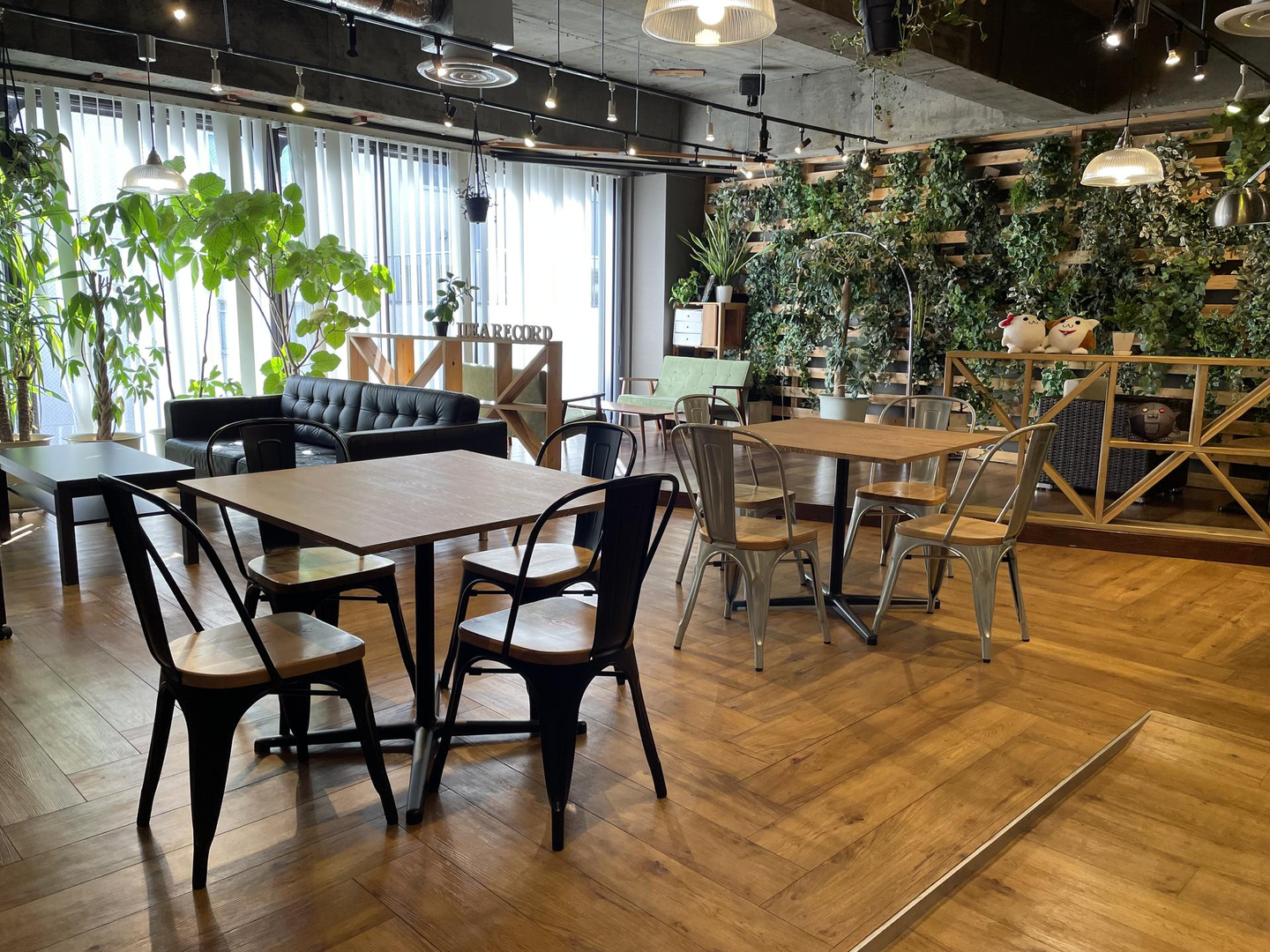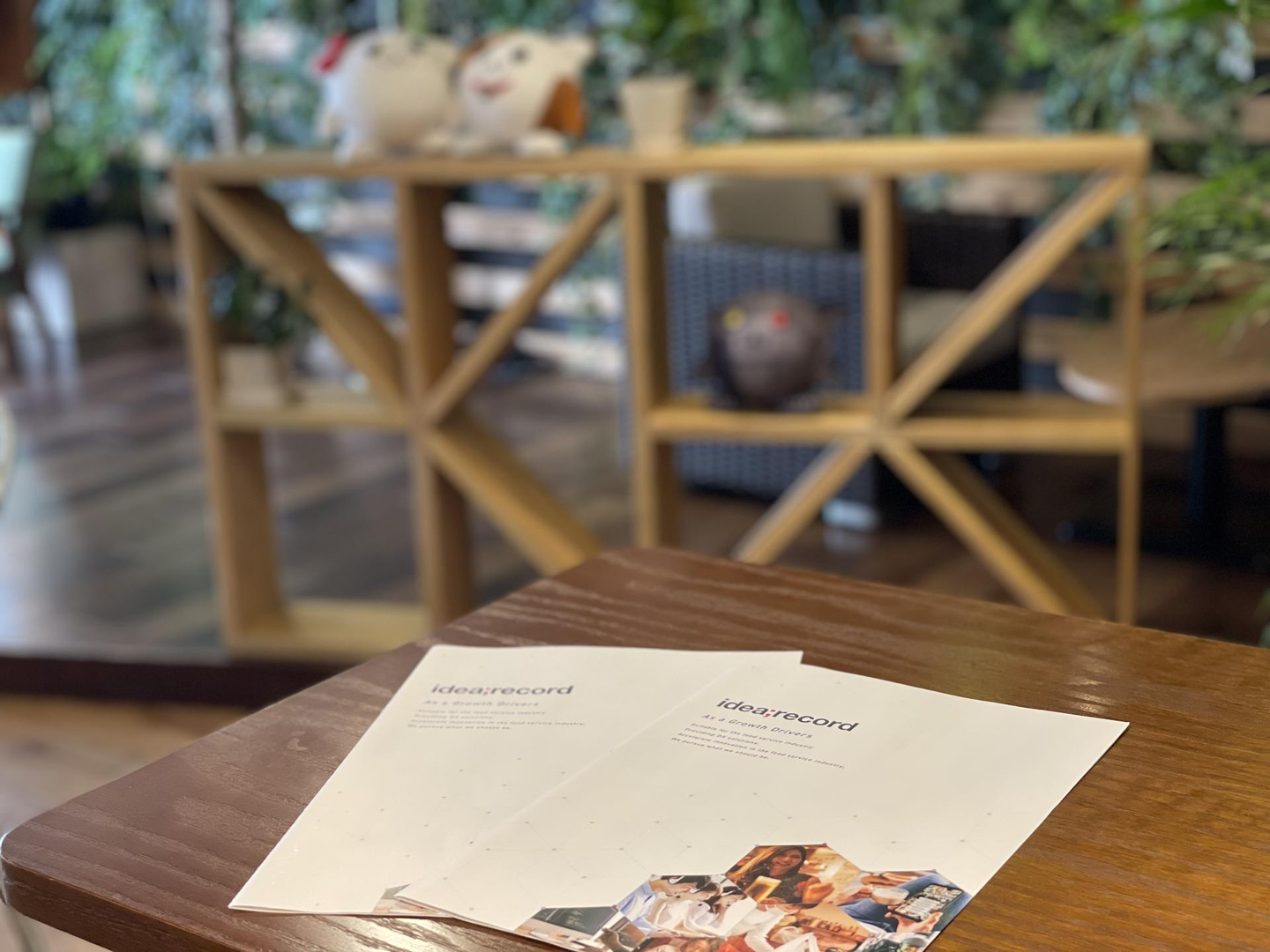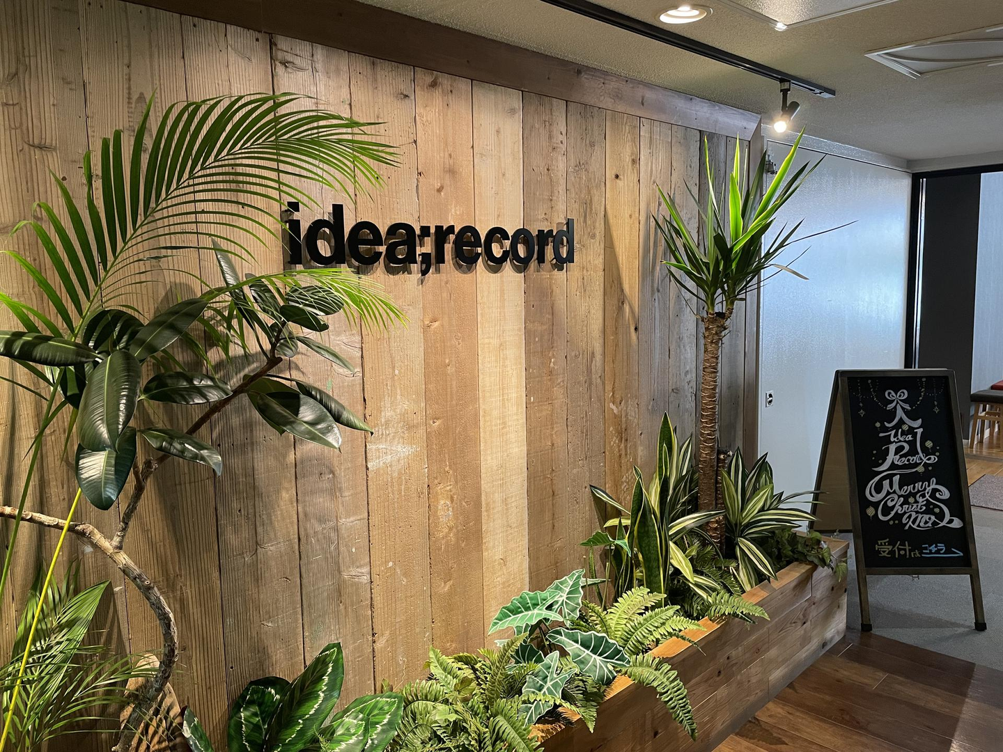 エレベーターのドアが開くと「idea;record」の文字が皆さまをお迎えします。暖色のライトとグリーンが温かい雰囲気を演出しています。