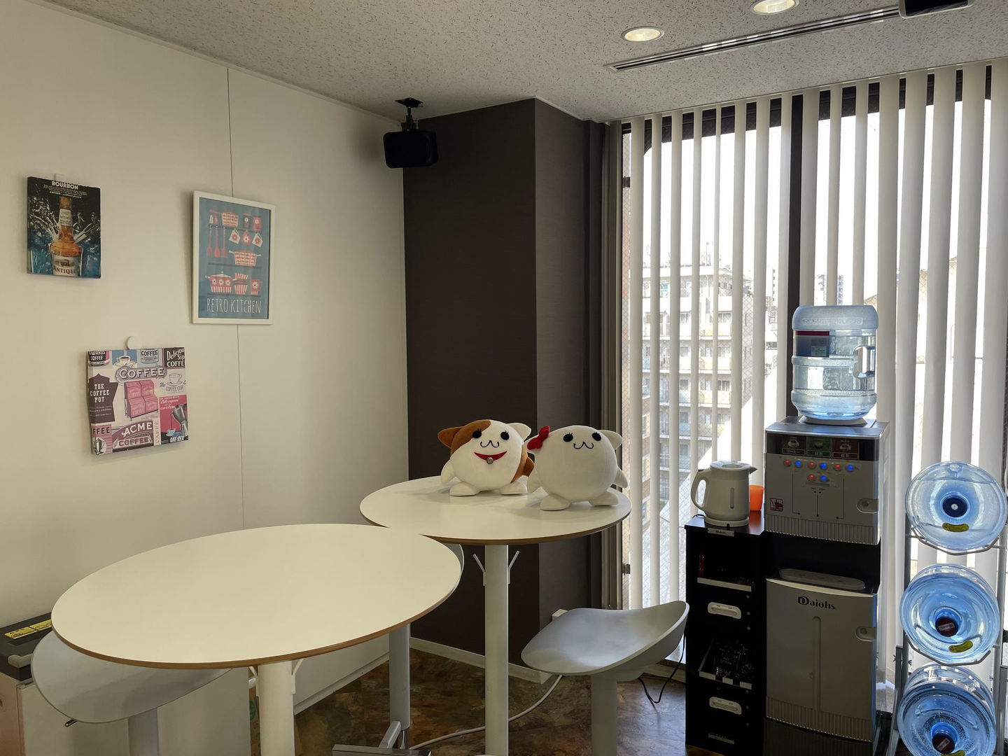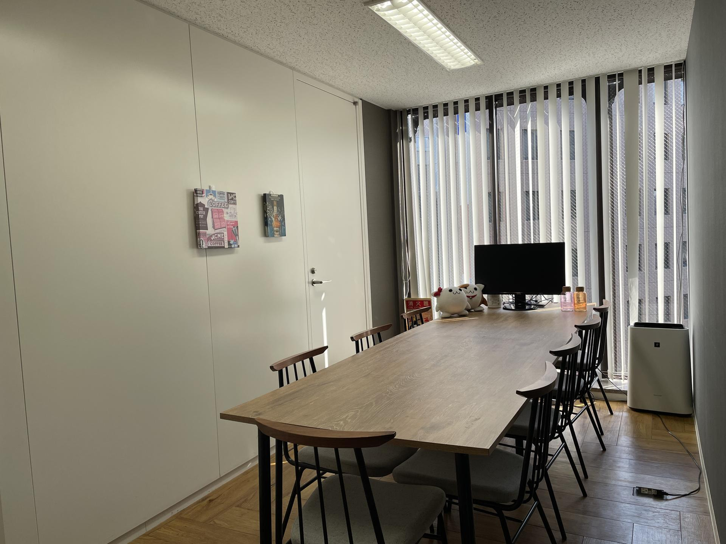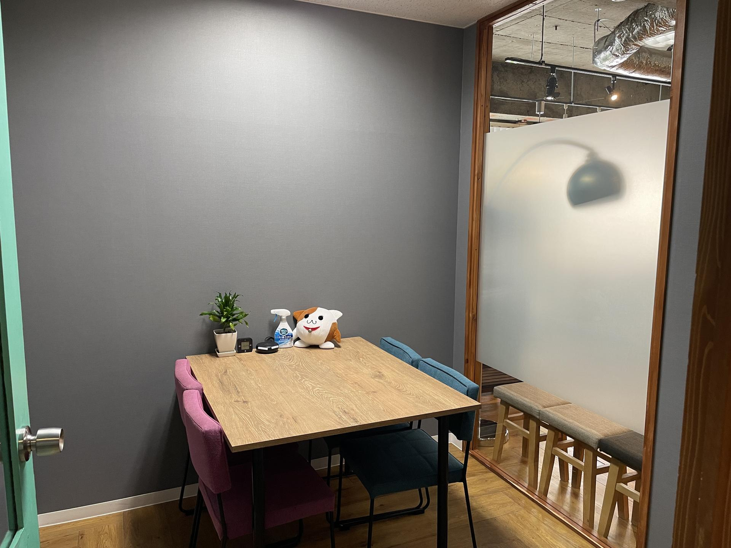 会議室は大小あわせて6つあります。昨今のリモート会議増加なども鑑み、それぞれの用途で使いやすい会議室を用意しています(イデアちゃん、どこにでも現れるな…)。
