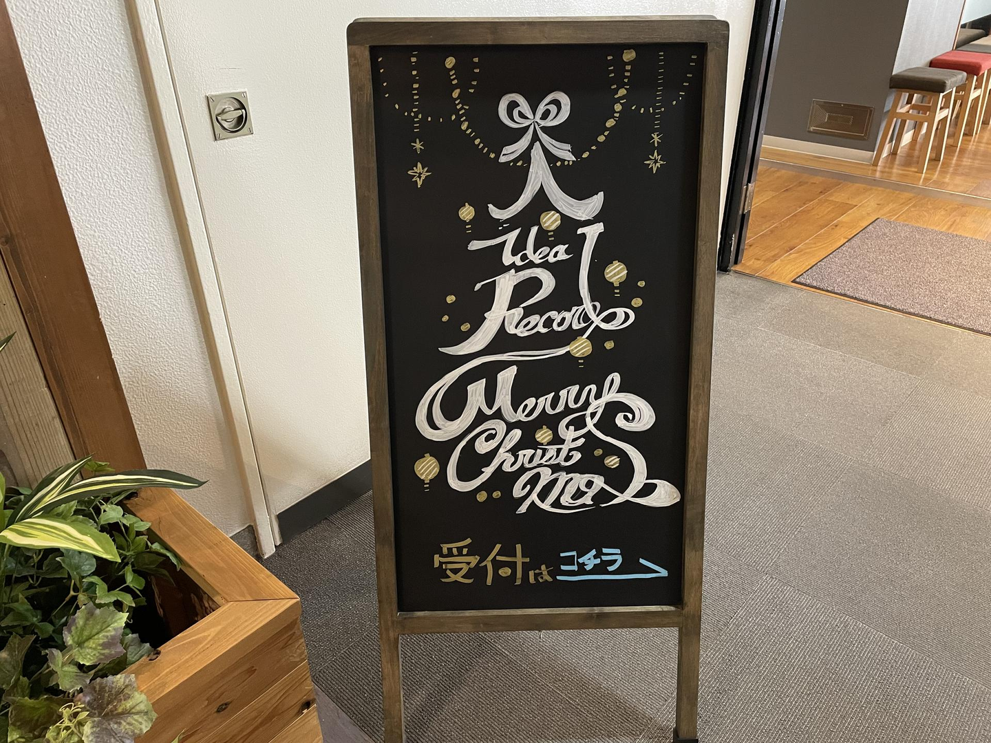 そして横のウェルカムボードは季節が楽しめるようなデザインで受付案内をしています。このウェルカムボードは社内のデザイナーが季節ごとのイベントや風物詩をイラストしています。