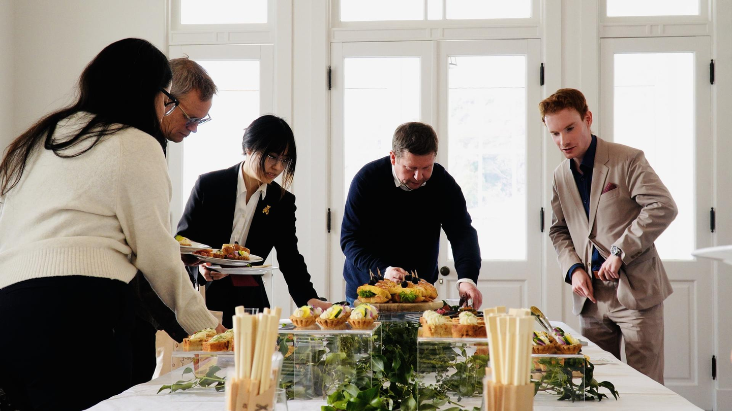 会場には、株式会社アベック様にご用意いただいた、地産地消の食材をふんだんに使った美しい料理が並びます。土地の恵みを丁寧に生かした一皿一皿が、自然と会話のきっかけを生み、テーブルごとに仕事の話、近況の話、これからの話が行き交っていきました。