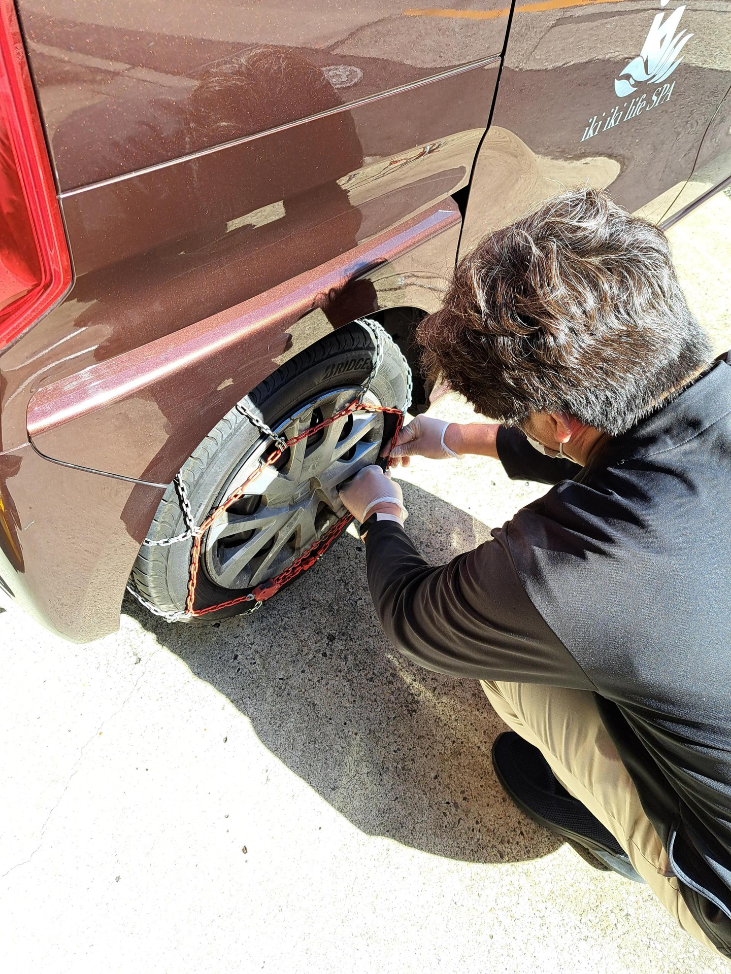 Kさんは 「明日は雪の予報だから、早めにチェーンをつけておこう!」 と準備を始めました。