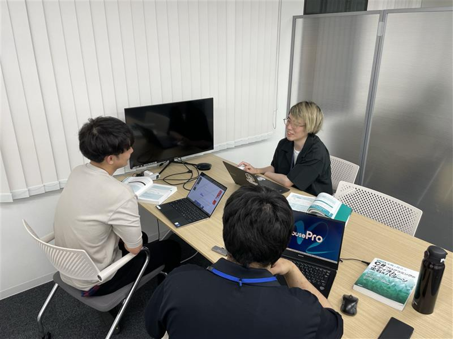 まず、弊社には任意参加の勉強会が複数ありますっ。どの勉強会も社員の半数以上が参加しているものになるのですが、それらとは別に独自に勉強会をされている方もいらっしゃいます!今回は業務後に3階の打ち合わせスペースでひっそりと行われていた勉強会に突撃取材をしてきました!