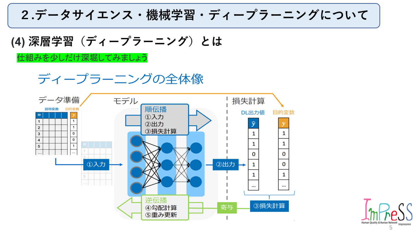 株式会社インプレスFollowhttp://www.imprex.co.jp大阪府FollowHomeAbout usMembersStoriesJob postings AI 事業推進グループ主催 第3回勉強会 中川 護 西日本事業部・AI事業推進グループリーダー on 2022-12-21 ★今回はメインテーマになるディープラーニングについてです!内容は以下の通りです。深層学習(ディープラーニング)とは (前編)良ければ見ていって下さい。★次回は実際にディープラーニングを行う作業の流れについての説明になります。 AI 事業推進グループ主催 第3回勉強会 中川 護 株式会社インプレス / 西日本事業部・AI事業推進グループリーダー 2 Likes Share 2 Likes