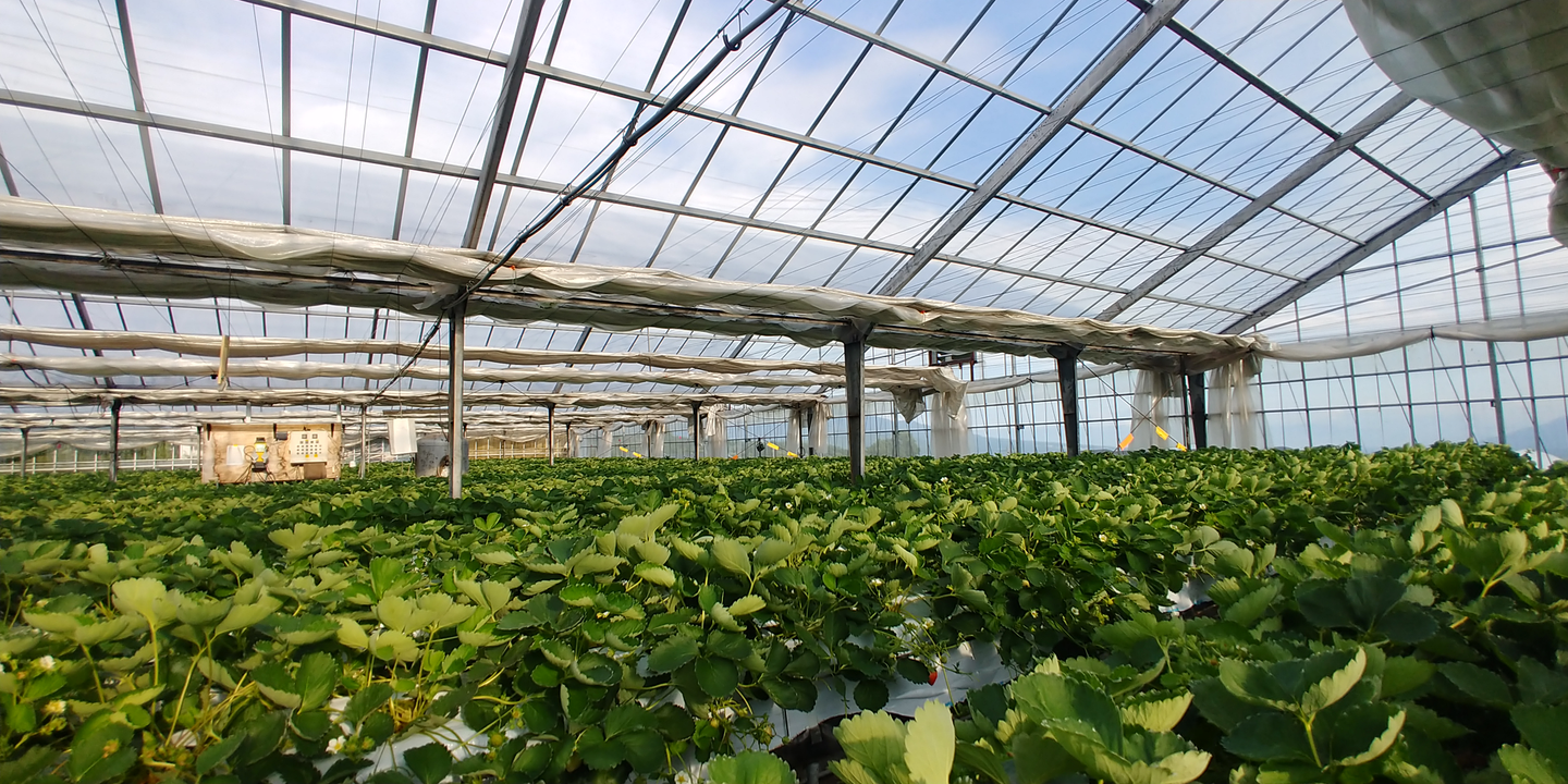 山梨県北杜市の八ヶ岳南麓標高約1000mの大地にあります。夏季冷涼な気候で日照時間が非常に長く、夏秋イチゴ栽培に大変適した環境であるということでした。