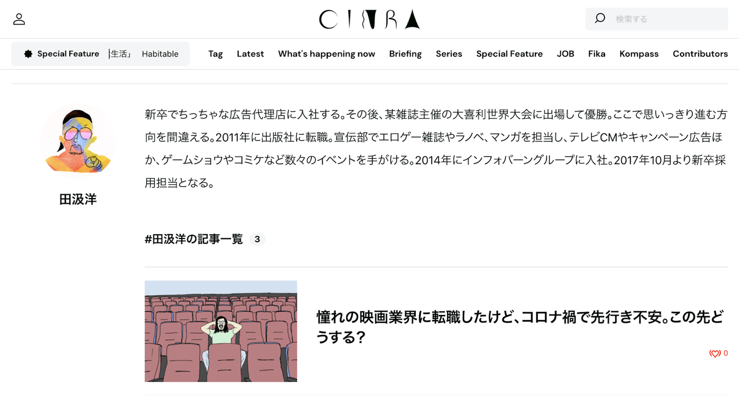 ▲インフォバーンの田汲(たくみ)はCINRAでお悩み相談の連載をやっています。