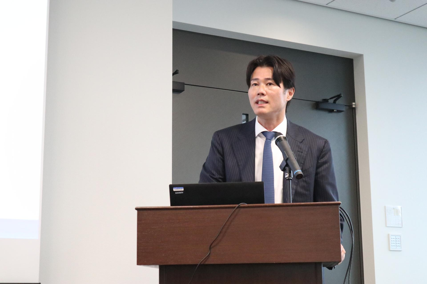戦略コンサルティングチーム ゼネラルマネージャー・歸山さんによるロジカルシンキング/ライティング、営業力研修の様子。3時間に渡って思考力だけでなく具体的なアクションまでが重要であることを熱く伝えているのが印象的でした。