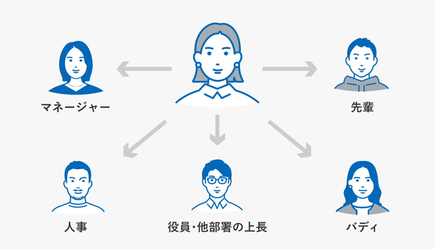 バディ(同じ部署の先輩): 日々の業務で困ったことや疑問についてすぐに相談できる、一番身近な先輩