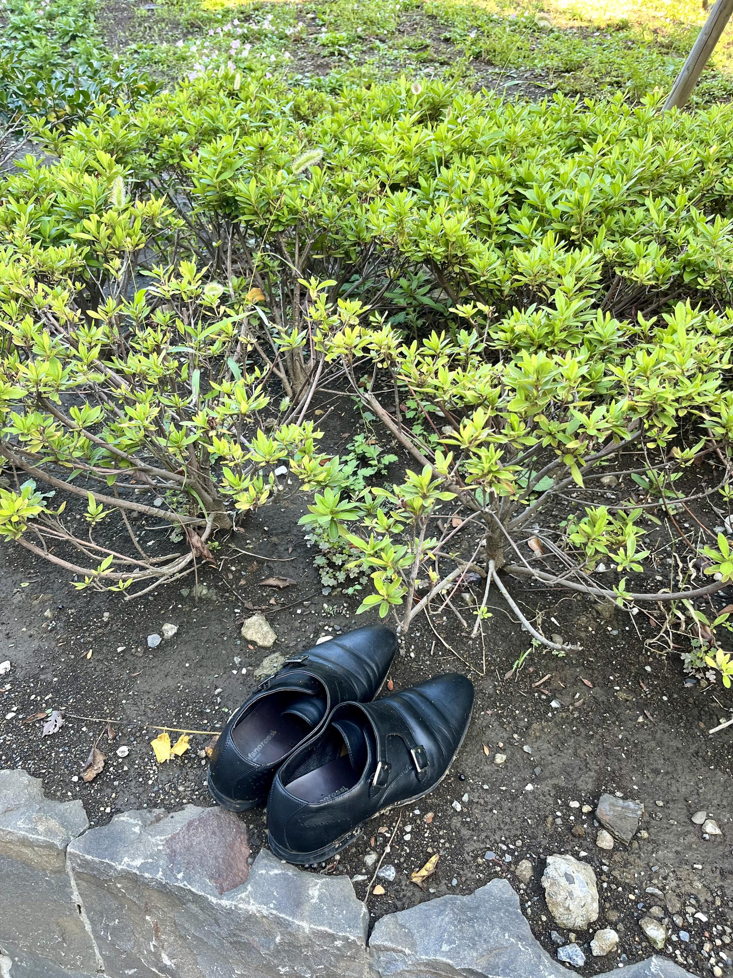 いや、でも泥酔して靴脱いで置いて行ったりする人いるよね(それが植え込みの前かは別にして)...とこの日はそのまま通り過ぎたのですが。