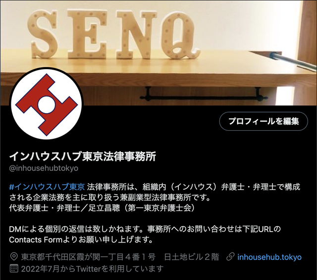 インハウスハブ東京法律事務所の公式Twitterアカウントを開設しました! 事務所の最新情報、参画弁護士・弁理士の登壇・寄稿・取材等の情報を不定期に投稿してまいります。 https://twitter.com/inhousehubtokyo