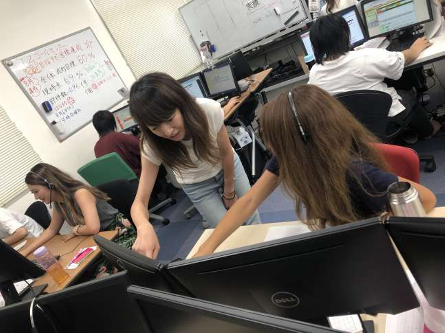 コールスタッフでは、毎日1時間おきに「コール件数」や「成約率」という全体の目標数字を出しています。その成績を都度チェックして、達成していたら「うまくいってるよ!」と声をかけたり、落ちてきたら「あとちょっと!」、あとは1人ひとりのスタッフを見て、不安そうな人がいたら声をかけてフォローするなどをしています。
