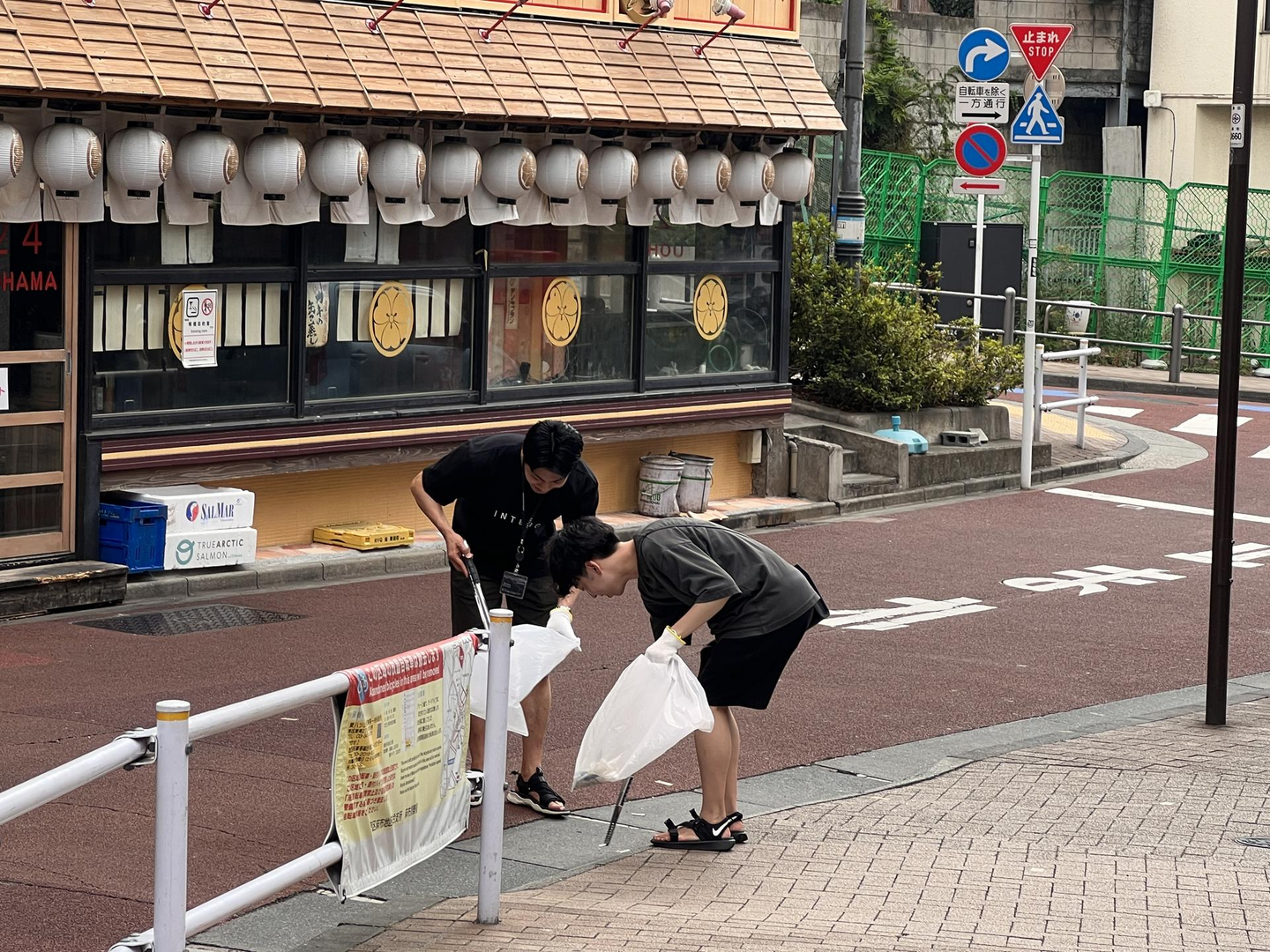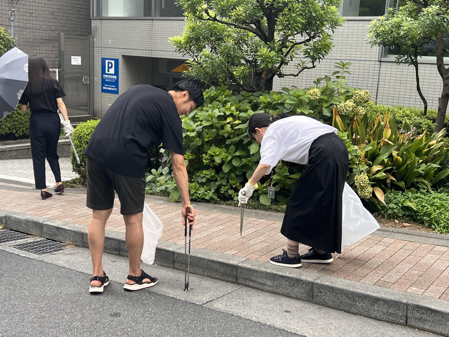 この日は朝から気温が30度近くまで上昇するという厳しい状況でしたが、みんな元気にオフィス前からゴミ拾いをスタートしました!(もちろん水分補給は忘れずに)