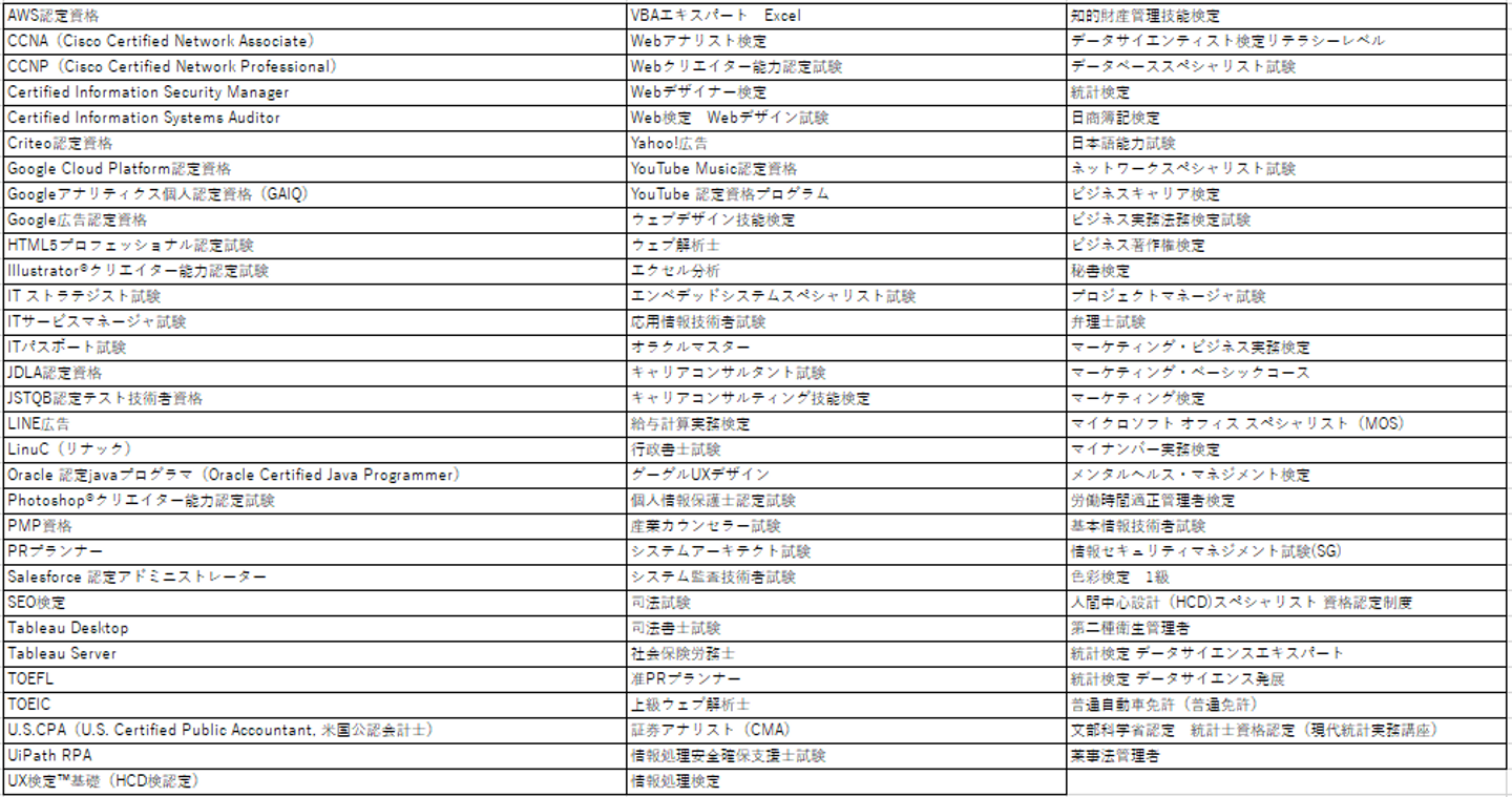 資格に関しては、年々変化するため毎年更新を行っており、今年度も新しい資格が追加されました。