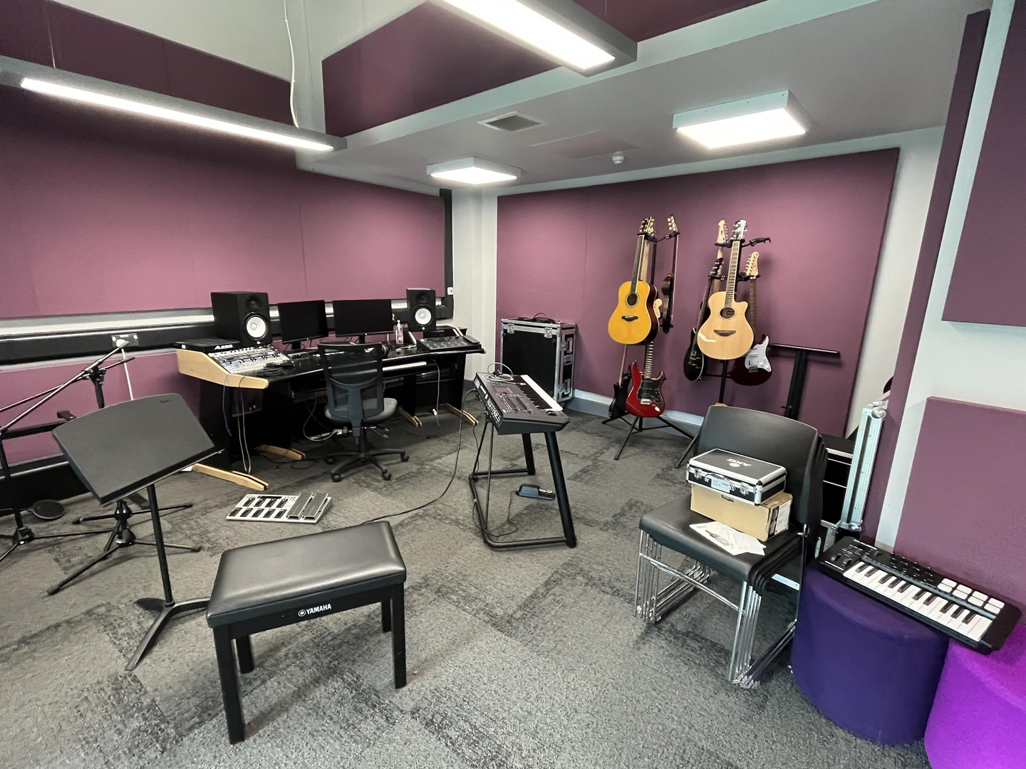 Leighton Park Collegeは、音楽に特化している学校として知られています。音楽の先生は27名も在籍し、60%の生徒は楽器を学んでいます。アカペラでも、作曲部門でも国内一位の実績があります。さらに、この学校は、世界でたった3校のみが認定されている、日本のヤマハ株式会社の「Yamaha Education Partner」の1校として、特別な教育パートナーシップを結んでいます。ヤマハから学校へ楽器やソフトウェアの提供を行っているため、音楽室にある楽器は全てヤマハ製でした。