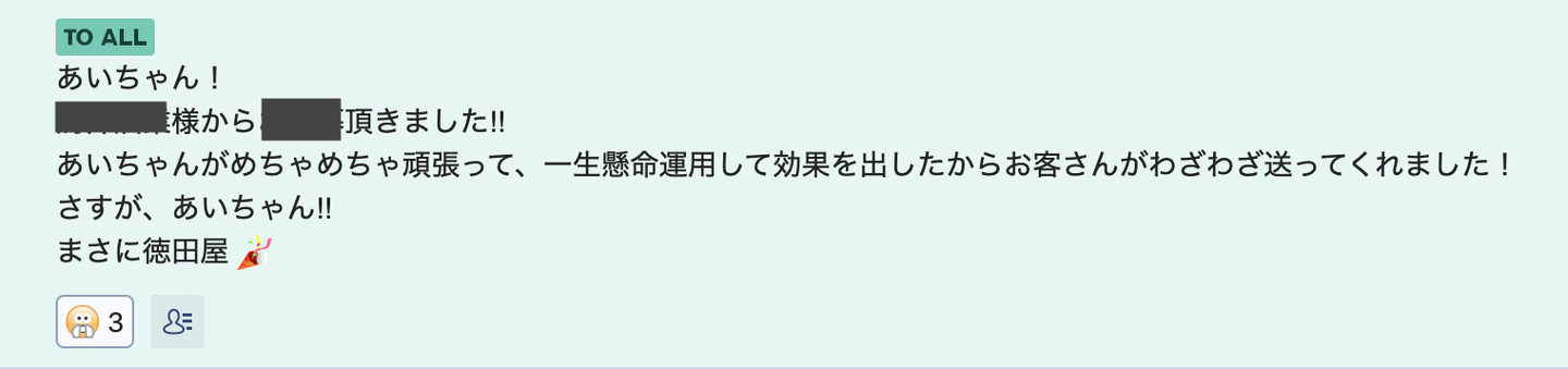 ①日々の小さな感謝を言葉にして伝えるチャットルーム「徳田屋」の運用