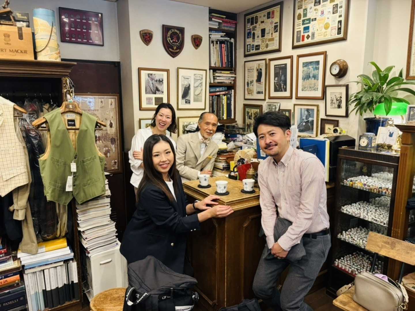 「そうだ僕、誰にも言ってないことがあったよ。僕がテーラー始めたの、あなたのお父さんがきっかけだよ。」・・・話はこうだ。50年程前、横浜の紳士服店で働いていた頃。その店のファン顧客だったのが父。ある時、工務店を営む父の実家が、創業記念に家族分のブレザーの仕立てをお願いした。当時担当に抜擢されたのが、加藤さん。本当に大変だったけど、顧客に寄り添う仕立ての面白さに魅せられたと。