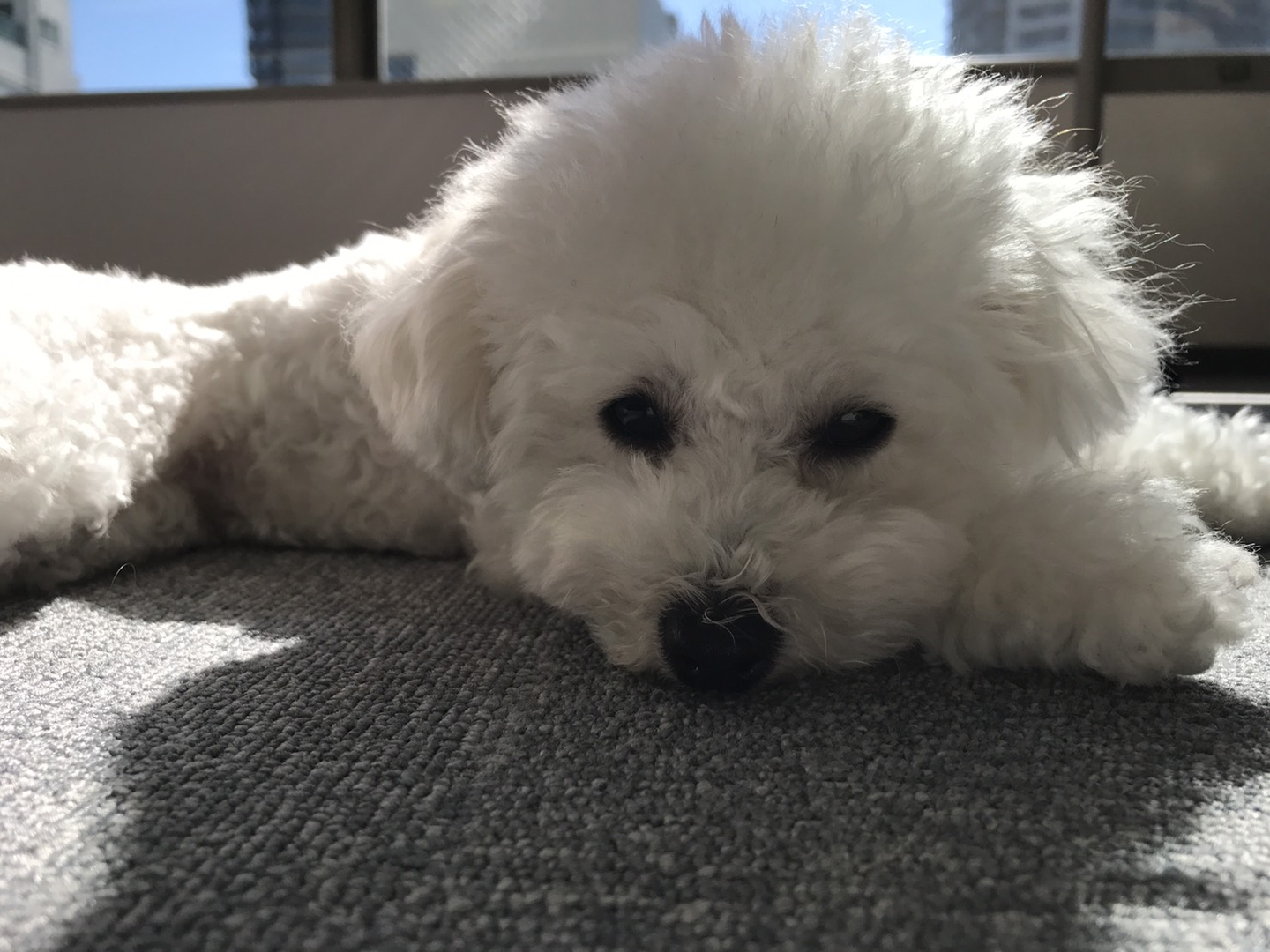 上の写真は日向ぼっこ中(太陽が動くと、ココちゃんも移動!)