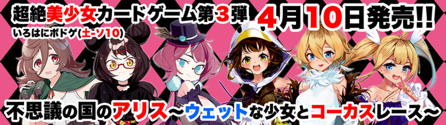 常識の斜め上をイくオタク系クリエイター集団:株式会社いろはにぽぺと(本社:東京都渋谷区、代表取締役:渡辺圭広 http://irohanipopeto.com )は、2021年4月10日、アナログゲームイベント「ゲームマーケット2021春」にて、濡らす?乾かすの2者択一がテーマの簡単美少女カードゲーム【不思議の国のアリス~ウェットな少女とコーカスレース~】を販売いたします。