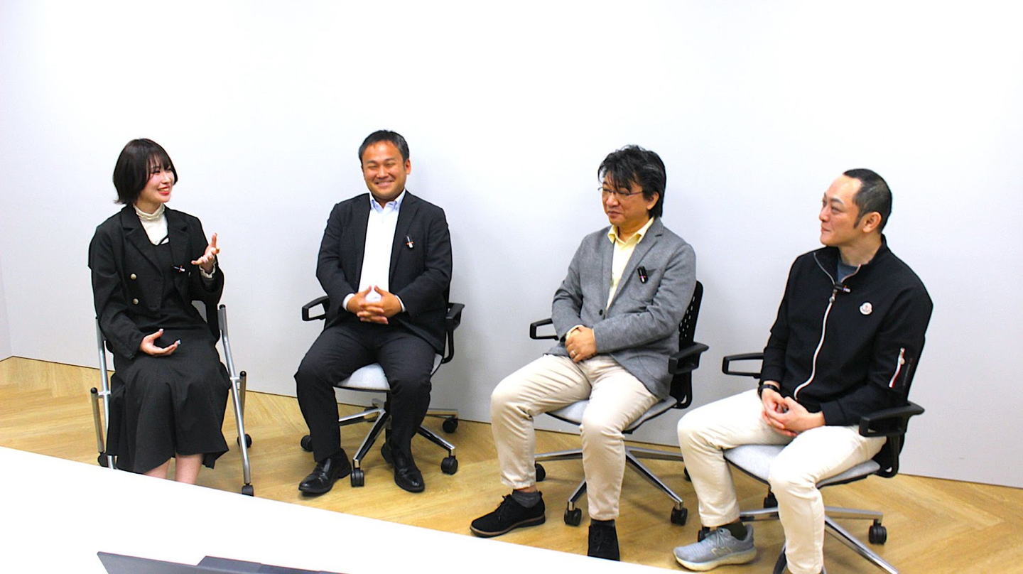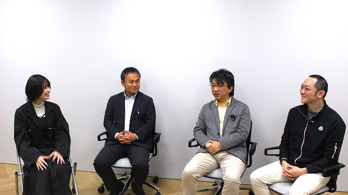 (左から、インタビュアー、ミッションディレクター福ちゃん、DX推進2部 部長ほっしー、エンジニア管掌役員のざさん)