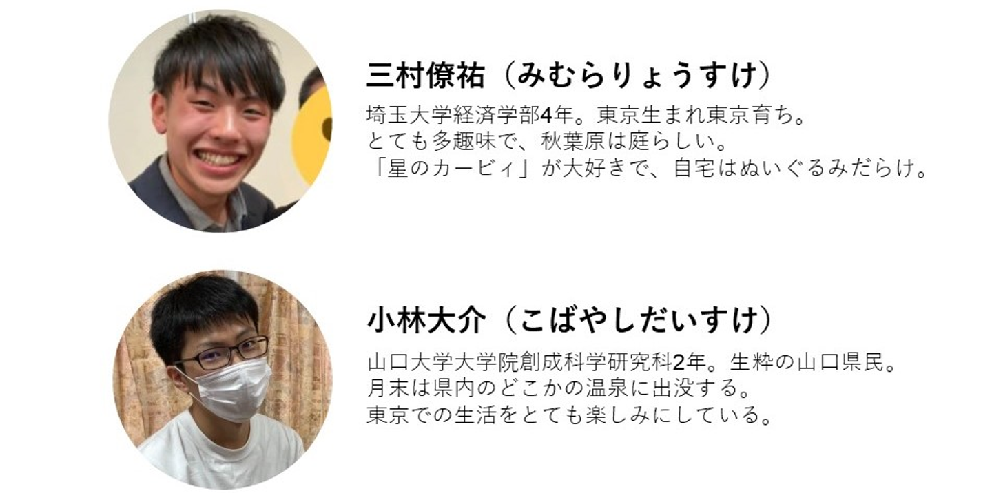 小林:人と話すのが好きというのも、特に年下の子と話すのが得意です。年下の兄弟がいることや、塾のバイトで中学生を相手にしていることが影響していそうです。大学生くらいだと共通の話題が無いと話したりしないのですが、中学生くらいだとなんでも話せるんですよね。少しくだらない、どうでもいい話もコミュニケーションでは必要な気がしています。