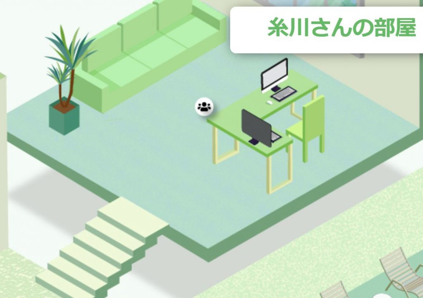 実際のオフィスに社長室なるものは無いのですが、小部屋が作れそうだったため糸川さんの部屋を設置してみました。