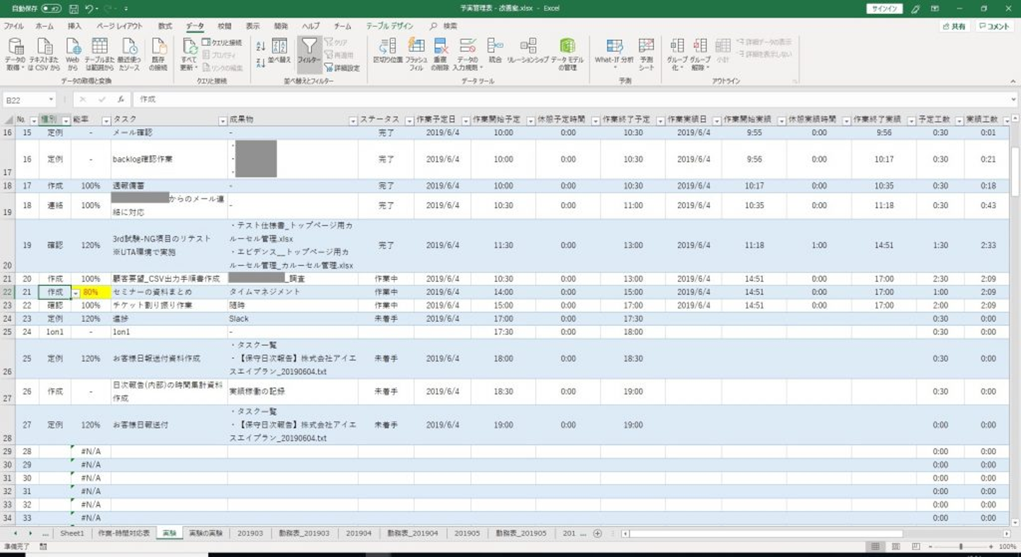 向さんは、予定と実績の差を振り返るためにデータを取っているとのこと。