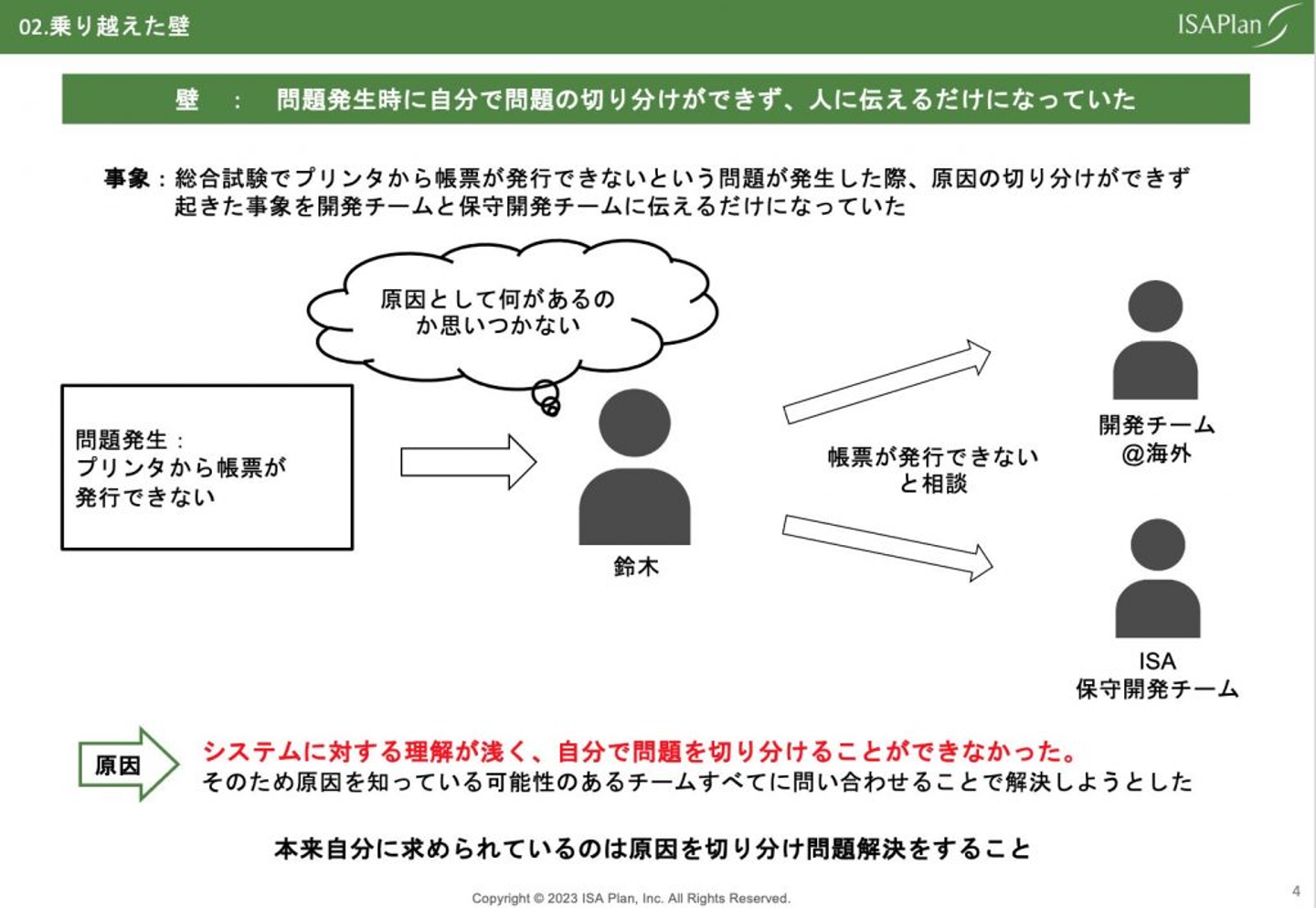 ーこのようにして「原因を切り分けられない」壁を乗り越えた鈴木さん。これからは、問題の原因が複数ある場合でも素早く切り分けができるようになると宣言してくれました。