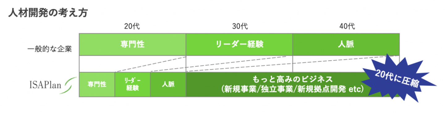 一方アイエスエイプランでは、この3点を20代に圧縮します。