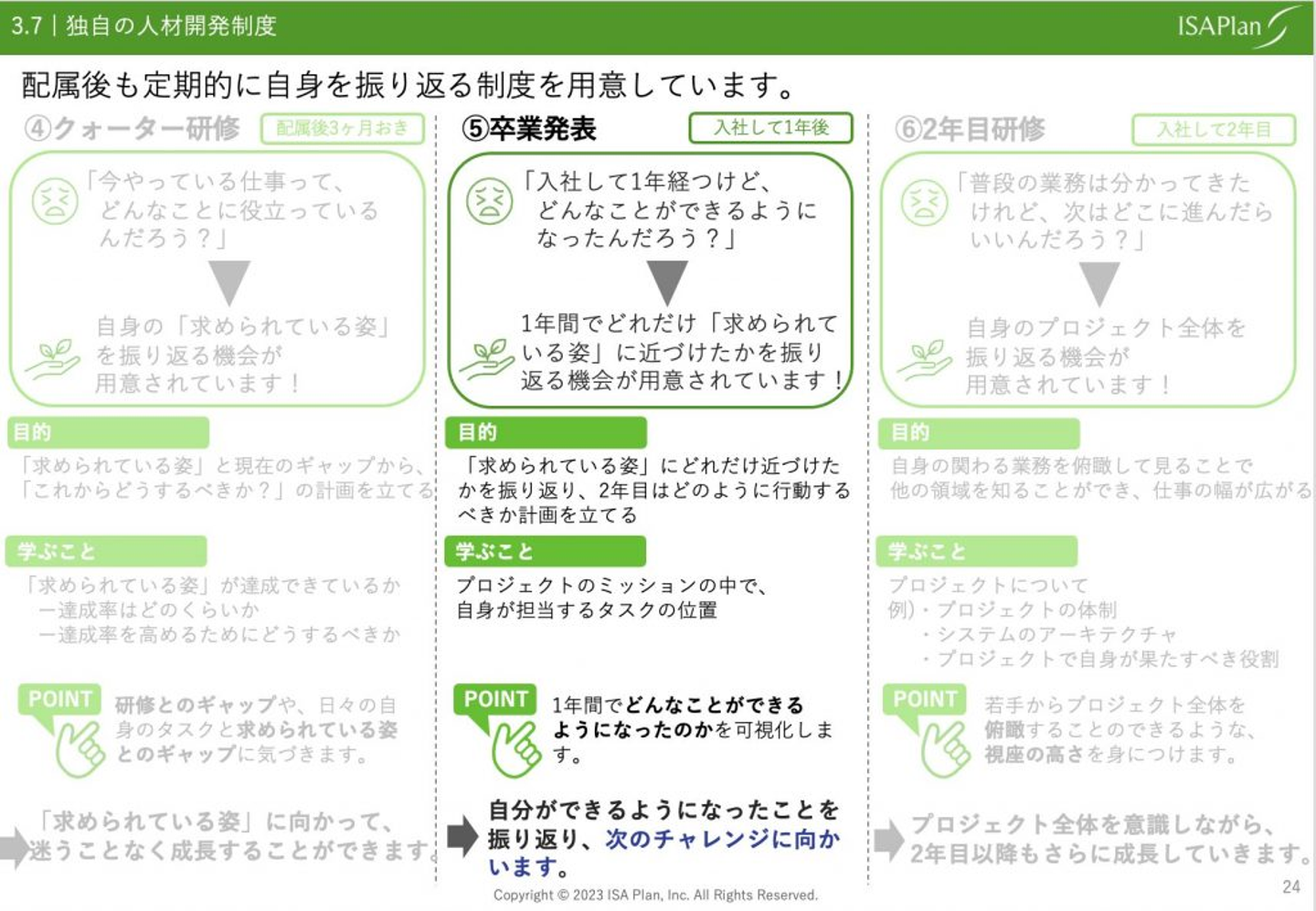 今回は、アイエスエイプランの人材開発制度「卒業発表」について紹介しました。