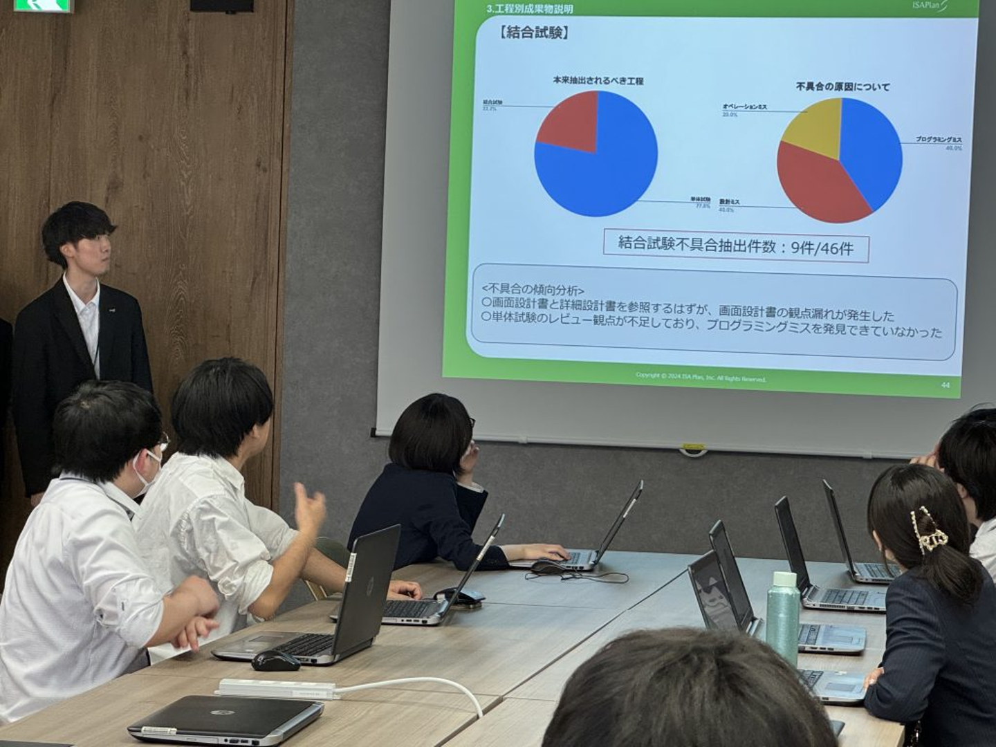 成果発表会では、ECサイトにどんな機能を実装したのかということ以外にも、開発を進める中でどのようなバグが見つかったのか、その傾向や原因についての分析をどのように考えたかが発表されました。