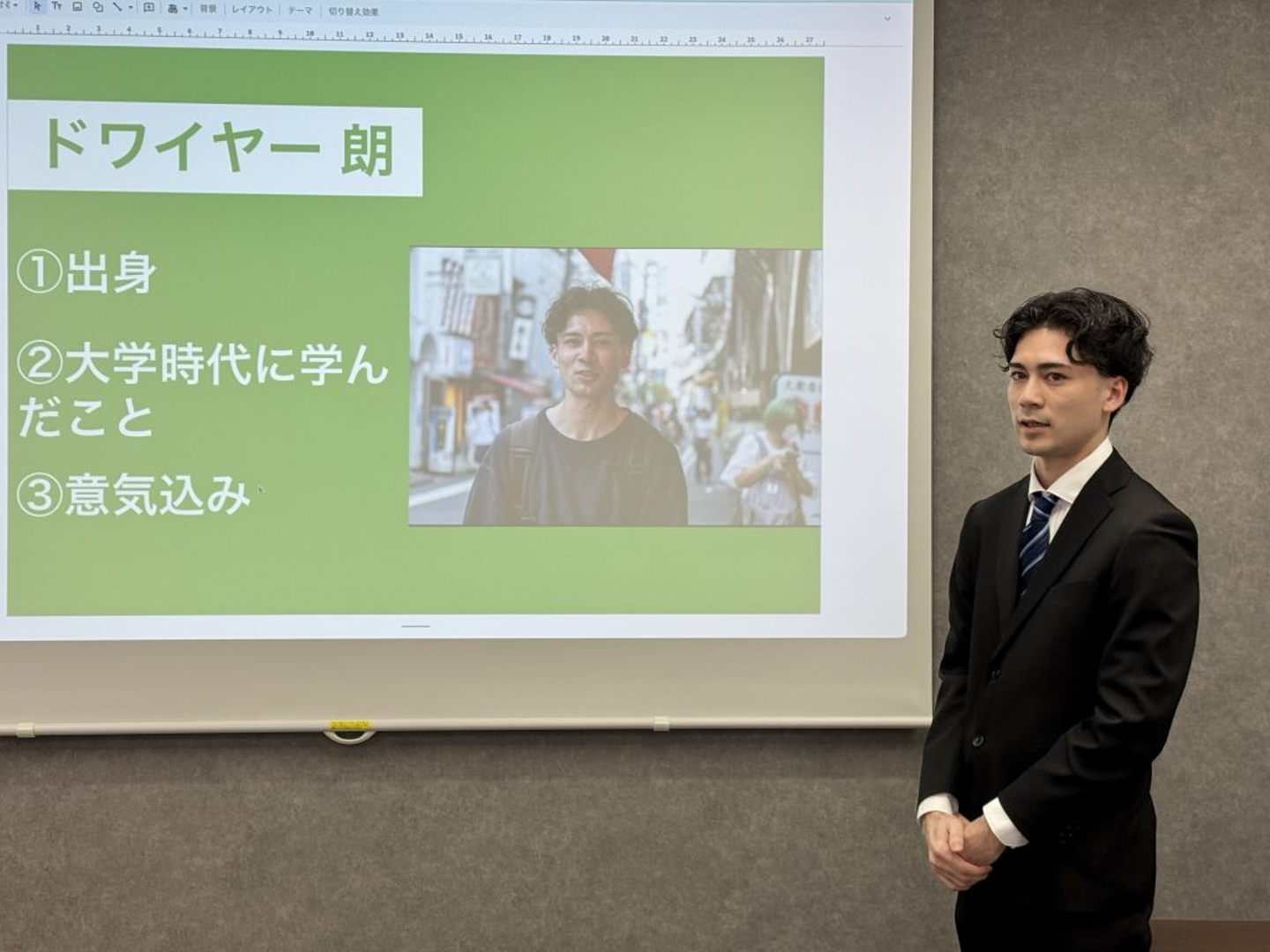 そこで、まずは社内の役員・執行役員に覚えてもらえるような自己紹介をやってみましょうという企画です。新入社員の皆さんには、聞き手に覚えてもらうためには何を話せばいいのかを考えて挑んでもらいました!