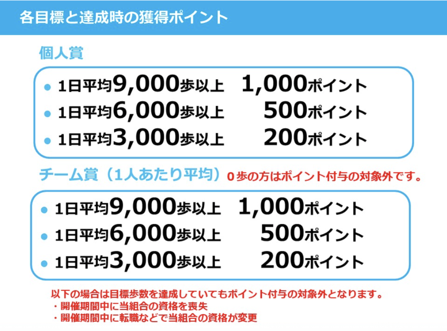 目標を達成したチームには、参加者全員に1,000ポイント(Amazonギフトカードに交換可能)が付与されます。