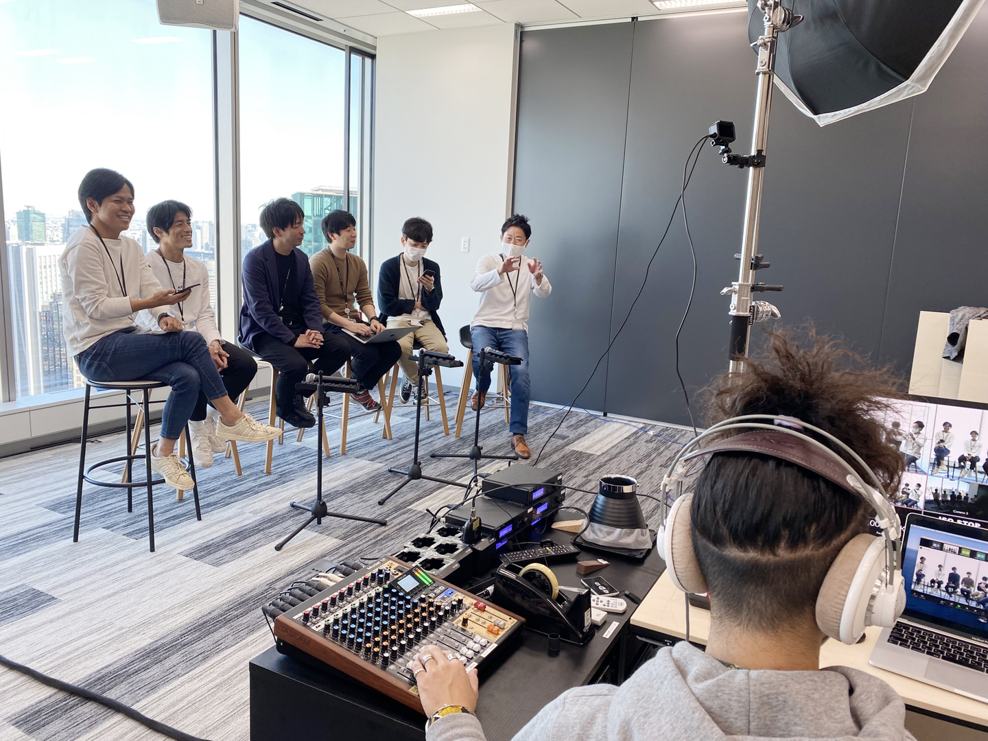 ↑ リッチな配信環境を作って本格的な配信を実現する動画クリエイターの清水(後ろ姿)
