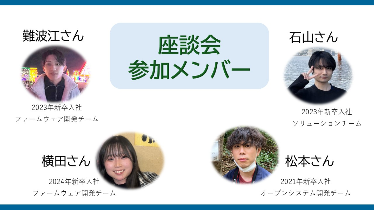 入社一年目から四年目の若手社員四名に座談会形式で話を聞きました!