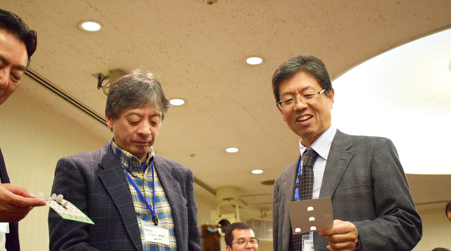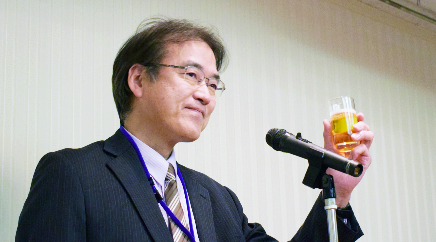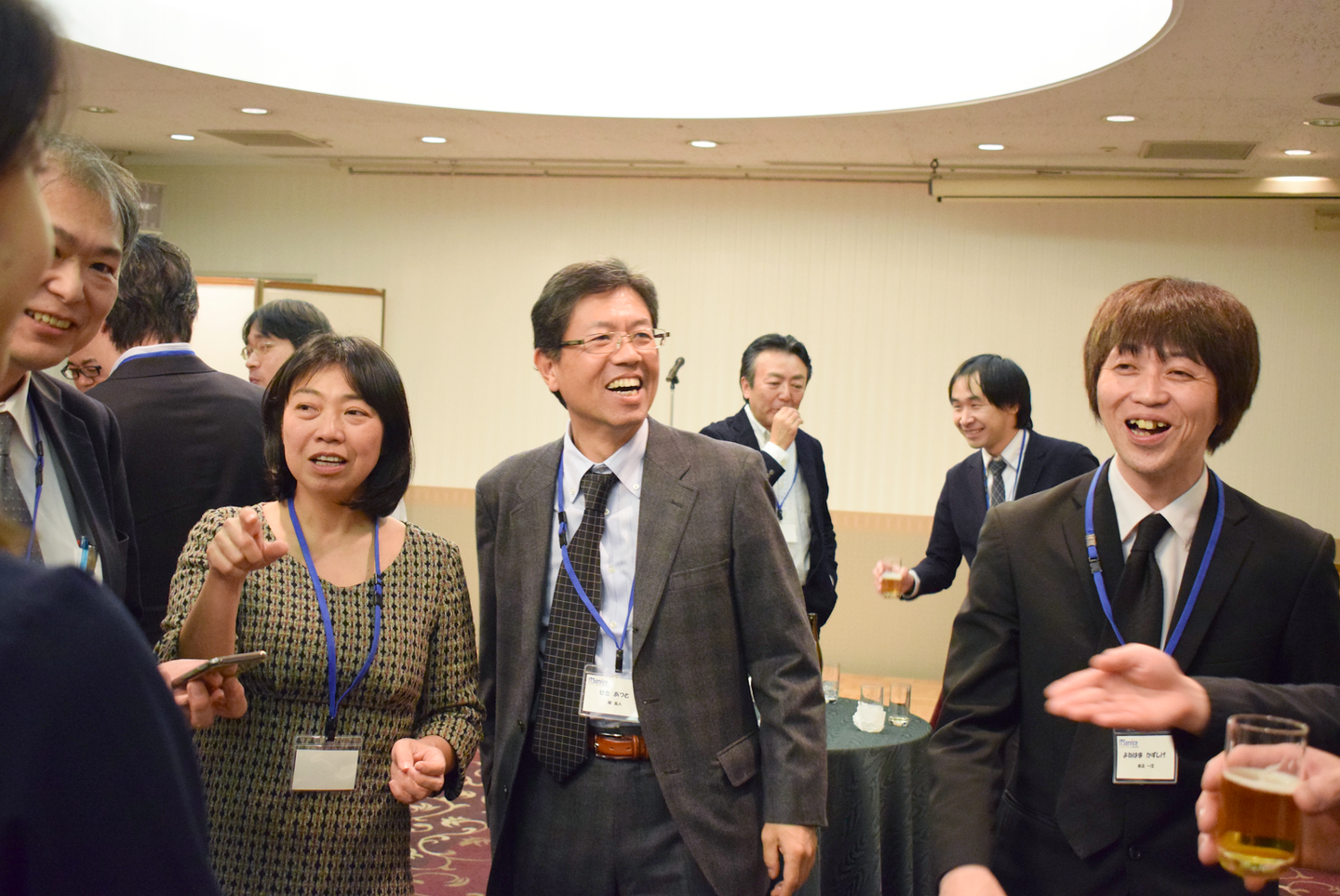 しばし食事&歓談タイム。皆さん、思い思いに食事を取ったり、気の会う仲間と会話したり。経営者も中堅も新人も、垣根なくフランクにコミュニケーションを取れるのが、ITSの良いところ。関社長や若木副社長も、自らさまざまなメンバーにビールを注いで回っていました。