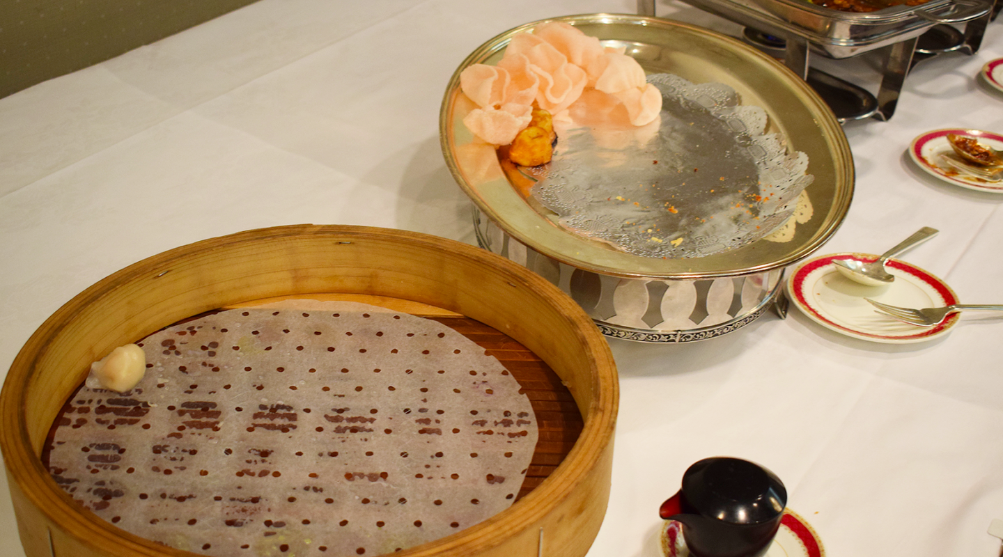 次はいよいよ、皆さんお待ちかねの忘年会。ですが、その前にセッティングチェンジ!美味しそうな料理が並び始めました〜。