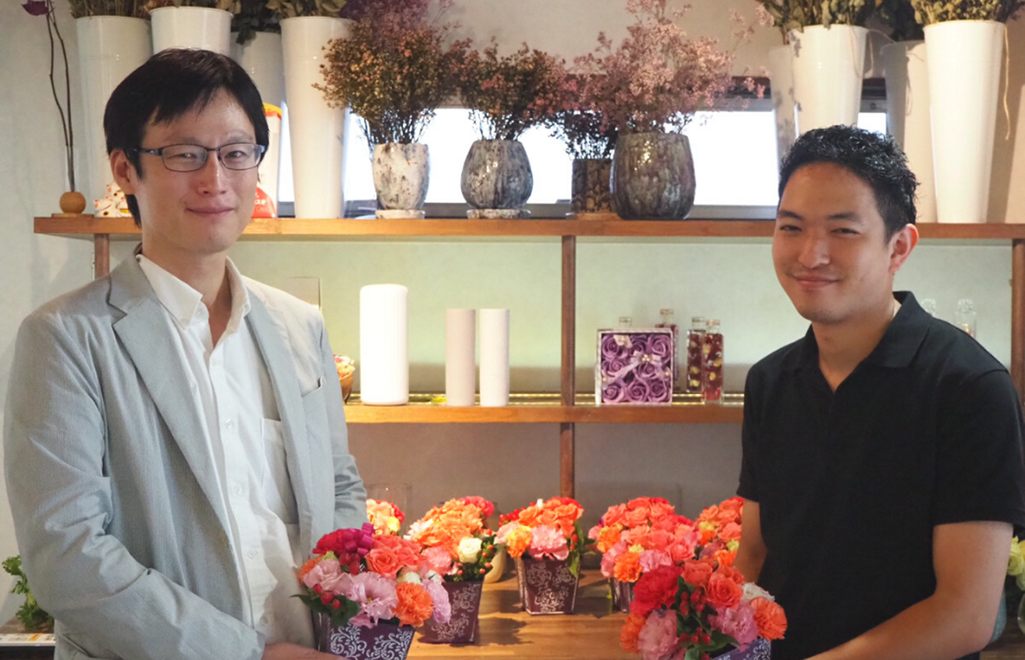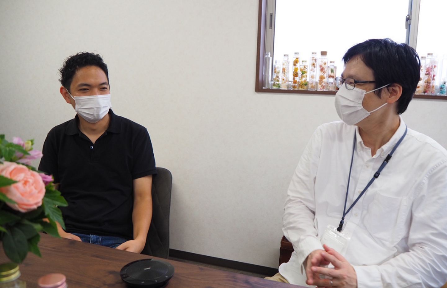 マッチングまでのストーリーや生花業界について、M&Aに対する不安など、共有しました。終始和やかな雰囲気で取材は進み、撮影も照れながらも快く対応して頂きました^^