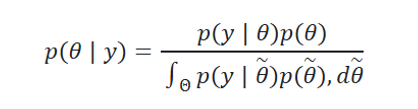 ベイズモデリングとは、ベイズの定理を基盤とした分析・モデリング手法のことです。ここでベイズの定理とは以下の式を指し、事前分布と標本モデルによって事後分布がどのように変化するかを定めたものです: