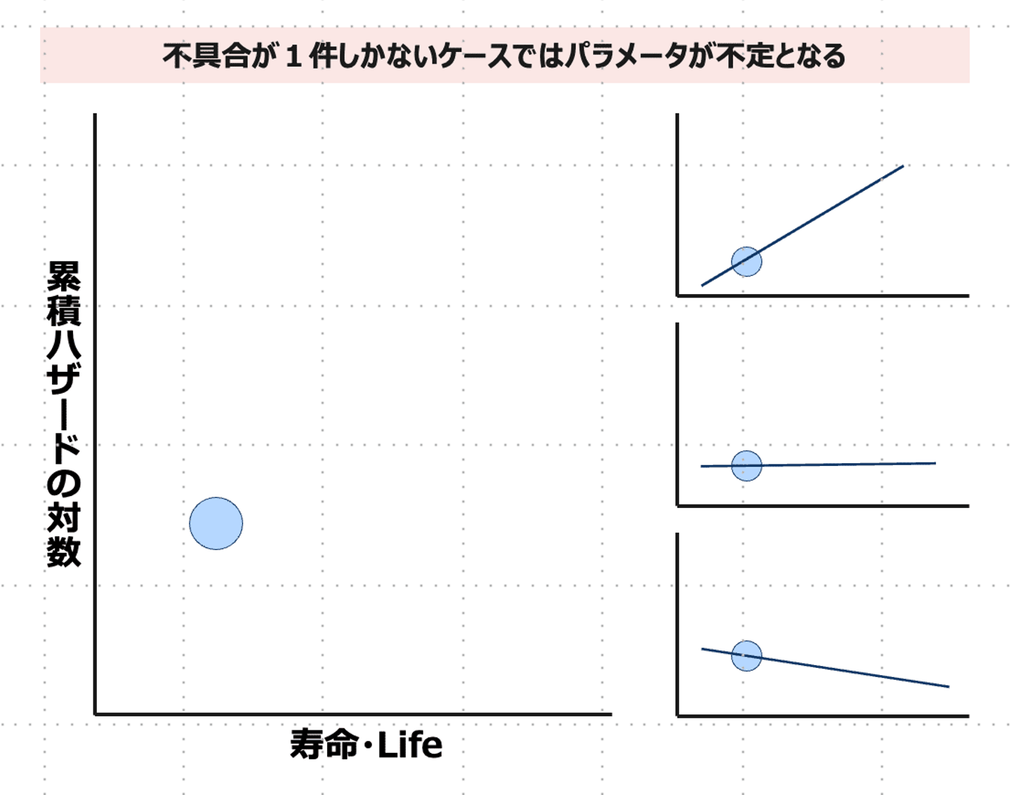 一方で特に品質保証の部門が一番知りたいのは正にこのような 不具合が1件しか発生していない状況における将来的な見通し です。この不具合が発生したのは偶然なのか、それとも設計・製造に起因するものであるのか。これから不具合が増加するのか、するとしたらどの程度か。こうした疑問に答えて意思決定を進めていくために、現場では「情報が少ない中でも判断するための枠組み」が求められます。