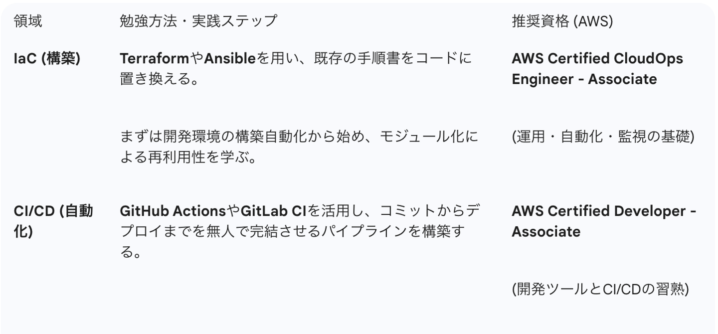 つまり、これからのエンジニアには、一つひとつ丁寧に作り込む手作りインフラではなく、設計図さえ流せば全自動で製品が出来上がる高効率なファクトリー(工場)を設計する能力が求められているのです。