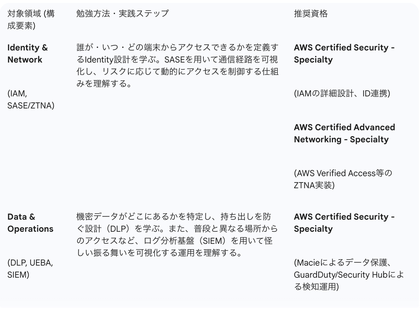 ゼロトラストは大規模な構成要素(SASEやSIEM等)が絡み合うため、個人環境での構築・再現は困難です。実務で通用する設計思想を身につけるには、各領域に特化したベンダー資格の取得が最短の近道となります。
