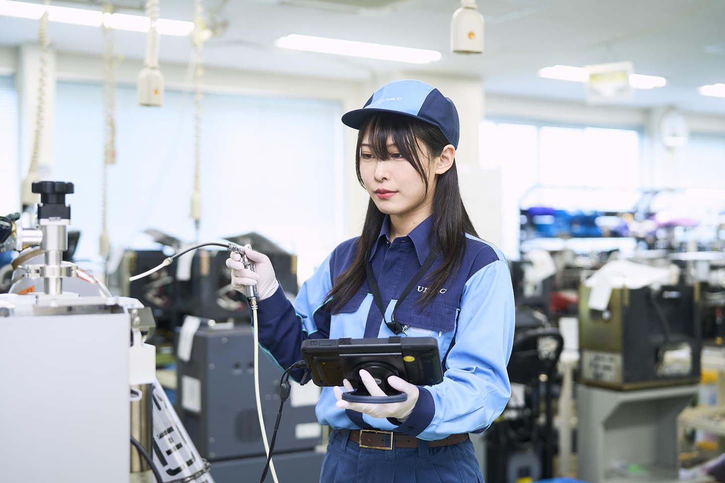 「ヘリウムリークディテクター」という、対象物の漏れ量、漏れ箇所を特定する機器 の整備やメンテナンス業務を行っています。