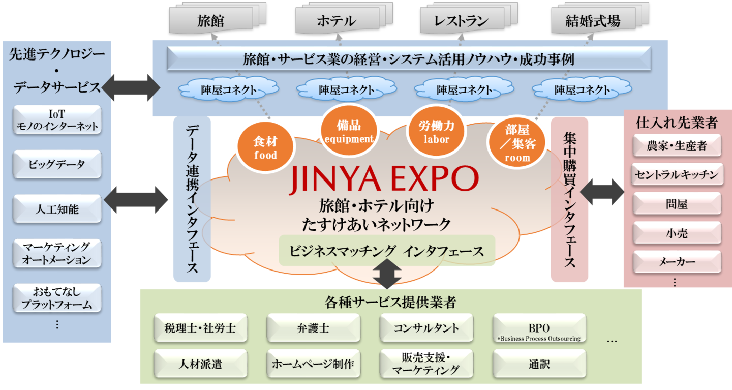 さらには、食材の共同購入や、料理支援など、「小さな旅館同士の助け合い」を支援するためのネットワーク「陣屋EXPO」のサービスも、実現に向けて実証実験を進めています。