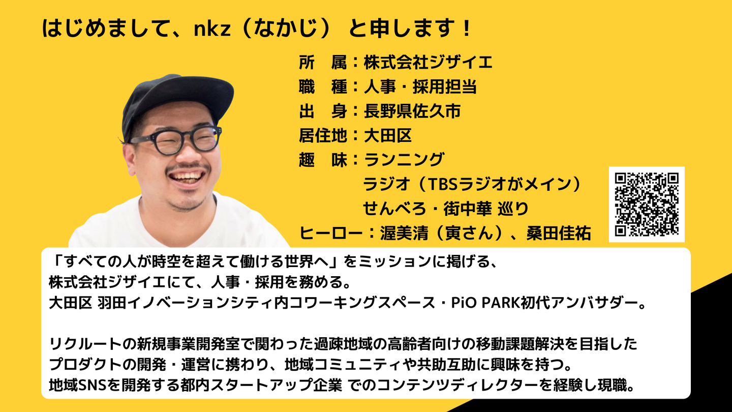 株式会社ジザイエでHRマネージャーをしている中嶋と申します!