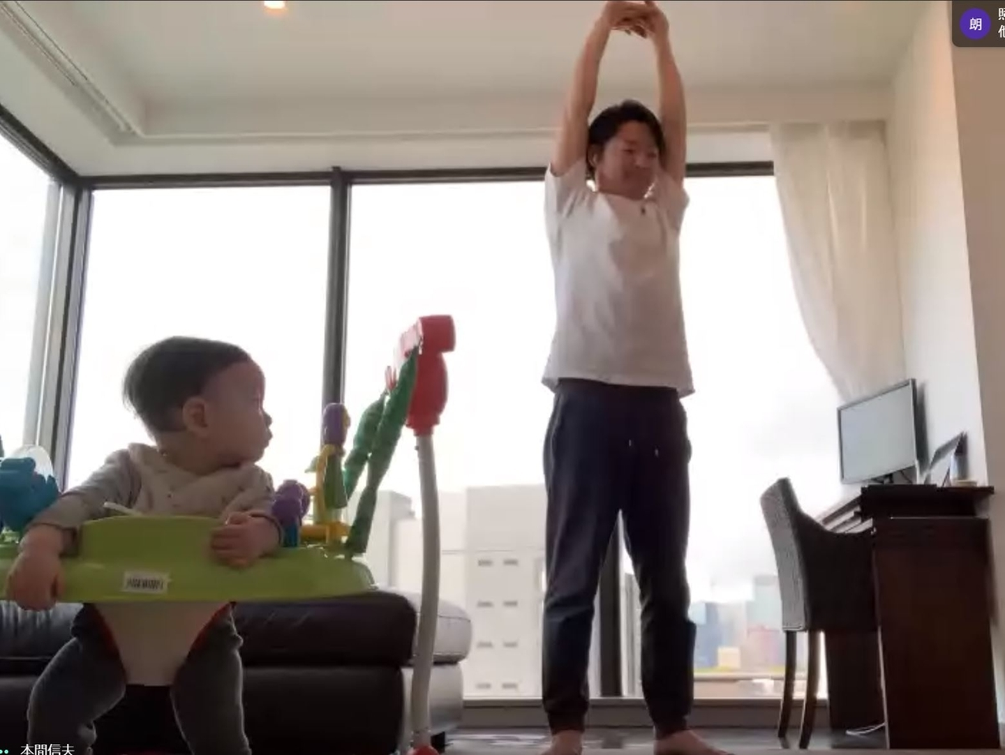 在宅勤務中の運動不足対策企画として「5分ですっきり!簡単エクササイズ」をオンライン放映しました。