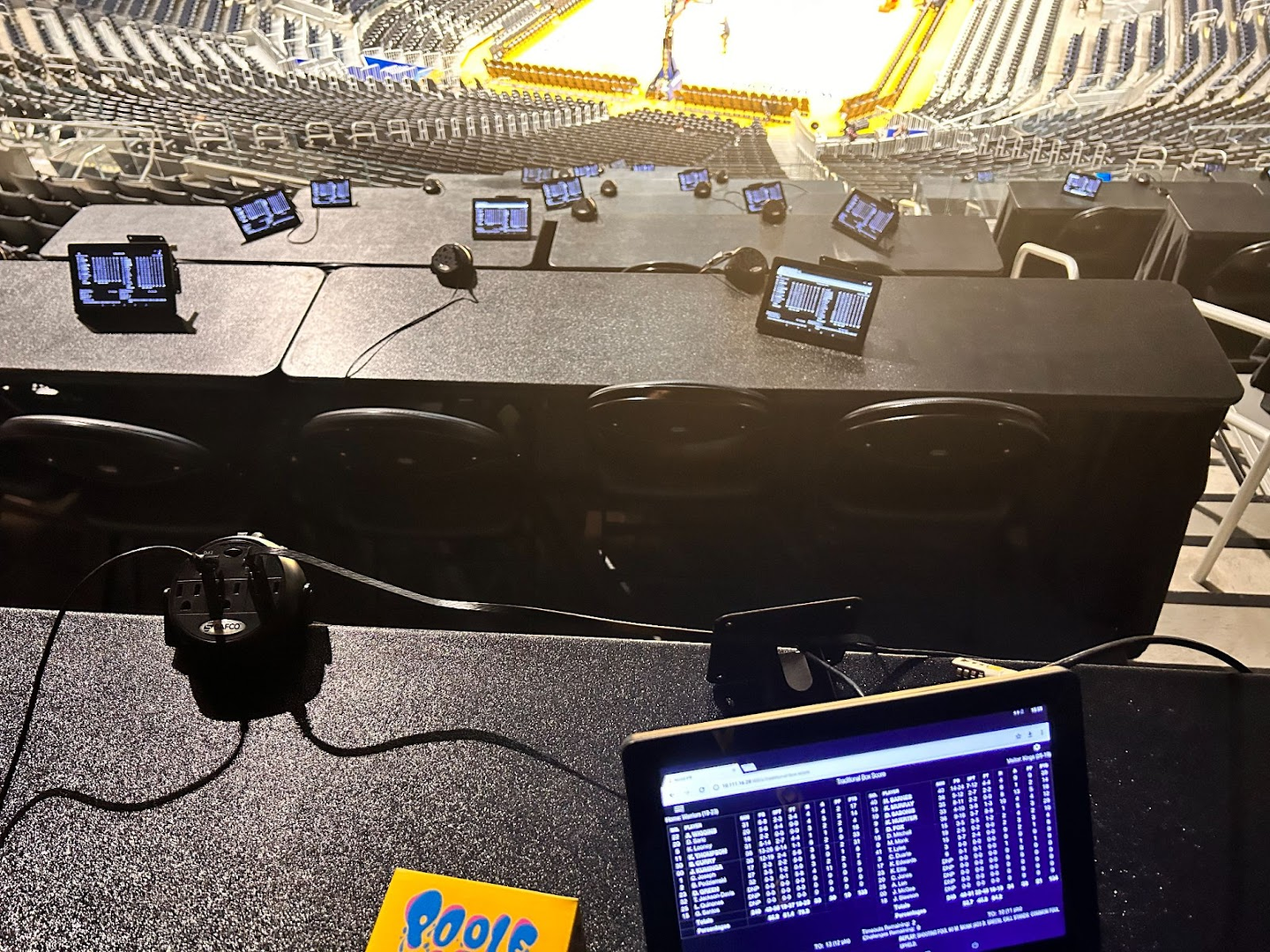 また他にもメディア席や控室をご案内いただきました。GSWとしてもどんなに良いチームでも、多くの方々に知ってもらうにはメディアの力が大切であるという考えのもと、メディア用の座席や控室は他のアリーナよりも力を入れているそうです。座席には各席にタブレットがありQ毎にスタッツを座席から確認することが出来ます。